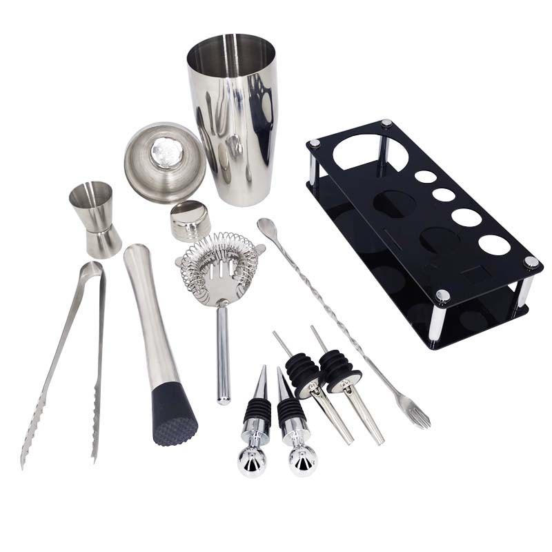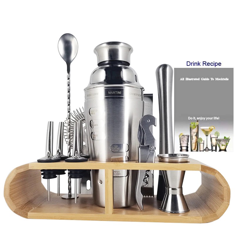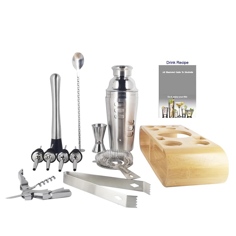 1-12 Pcs Cocktail Shaker Bar Tools Set Barware Shakers Kit Jigger Muddler Spoon With Bamboo Stand