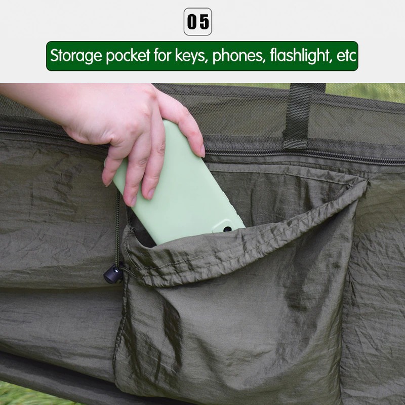 4. Kurulumu son derece kolay: cibinlik tasarımlı hamak yeni başlayanlar için bile kurulumu çok kolaydır! Seyahatinizi ve kampınızı düzenlemek ve eğlenmek sadece birkaç dakika sürer.