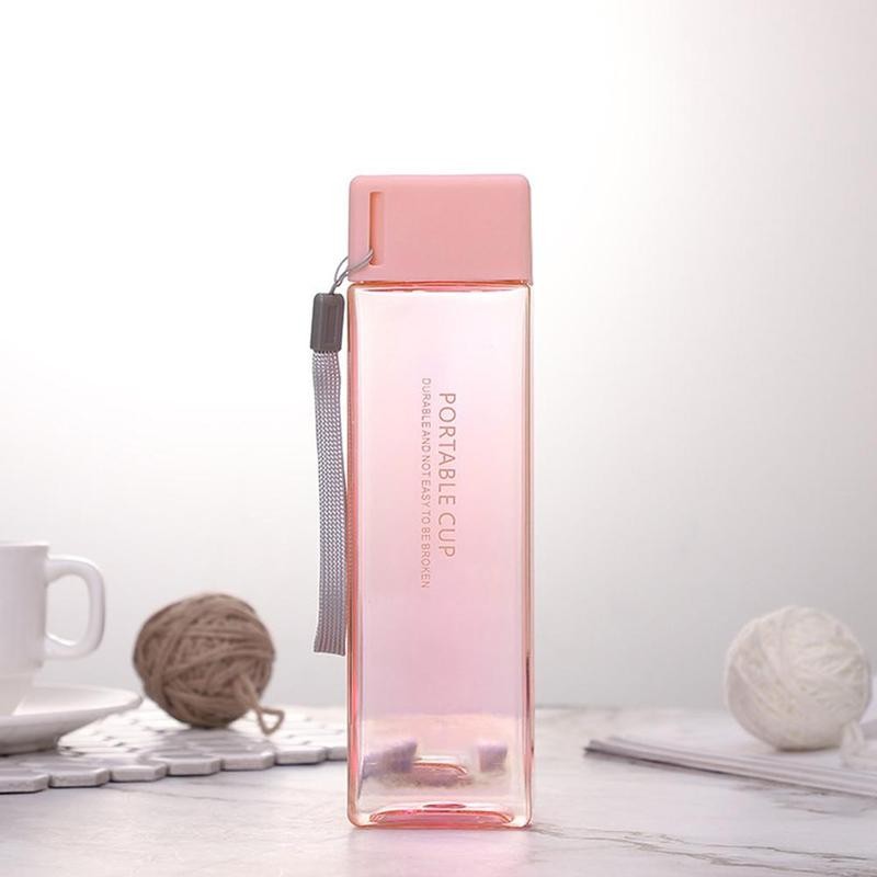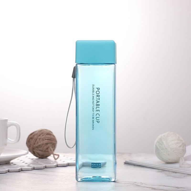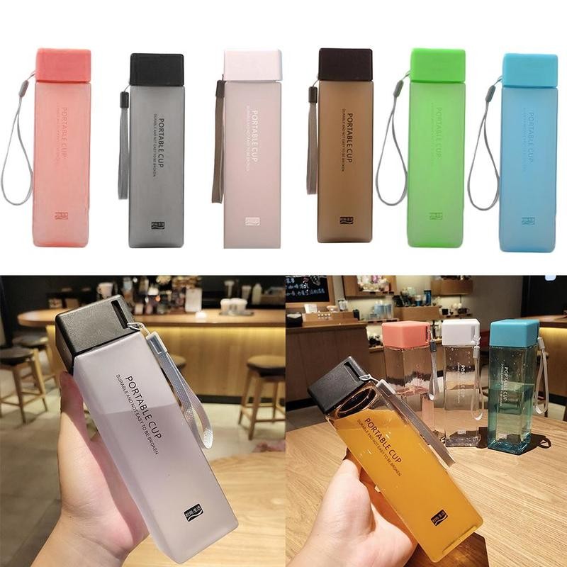 1 Peça Transparente Quadrado Plástico Fosco Copo De Água Ao Ar Livre Suco Frio Esportes De Água Copo Com Corda Leite Portátil Copo De Água