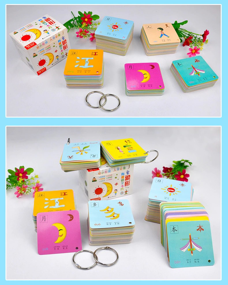 1008 ページ漢字絵文字フラッシュカード 1 & 2 のため 0-8 歳の赤ちゃん/幼児/子供 8 × 8 センチメートル学習card1in