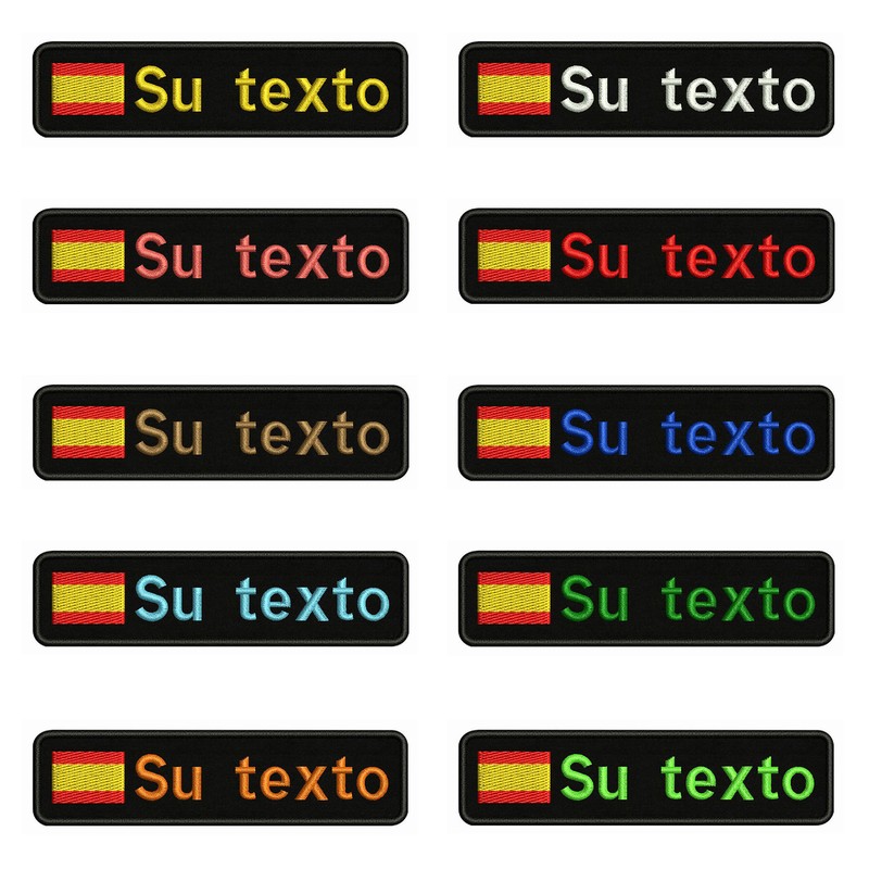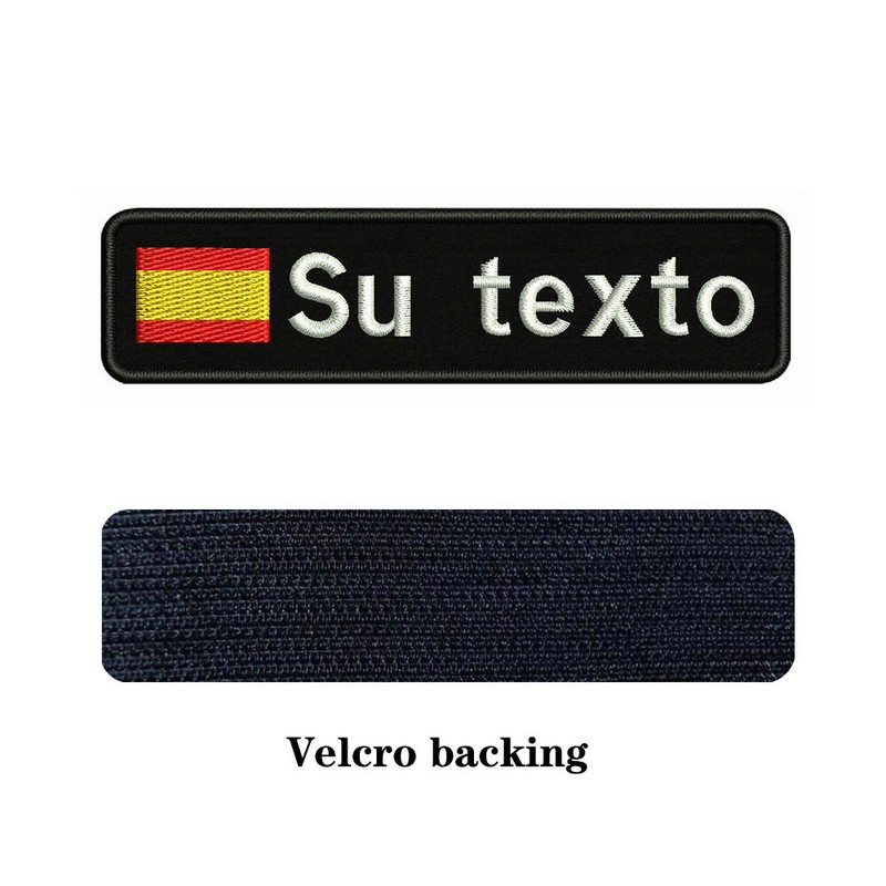 • Parches De Velcros Para Planchar Con La Bandera Española, 10X2, 5 Cm Bordado Personalizado Con El Nombre, Insignia A Rayas