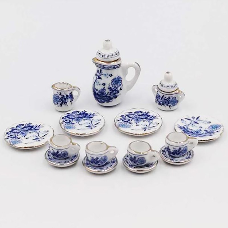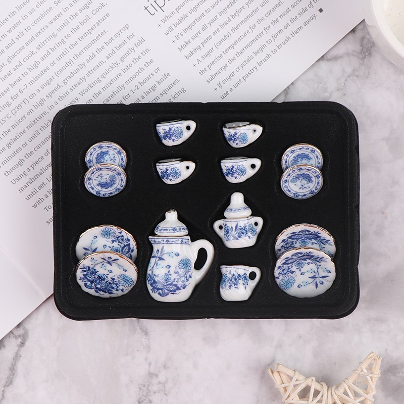 Ensemble De Tasses À Thé En Porcelaine Miniature, 15 Pièces, 1:12 Vaisselle À Fleurs Cuisine Meubles De Maison De Poupée Jouets Pour Enfants, Tasses À Thé