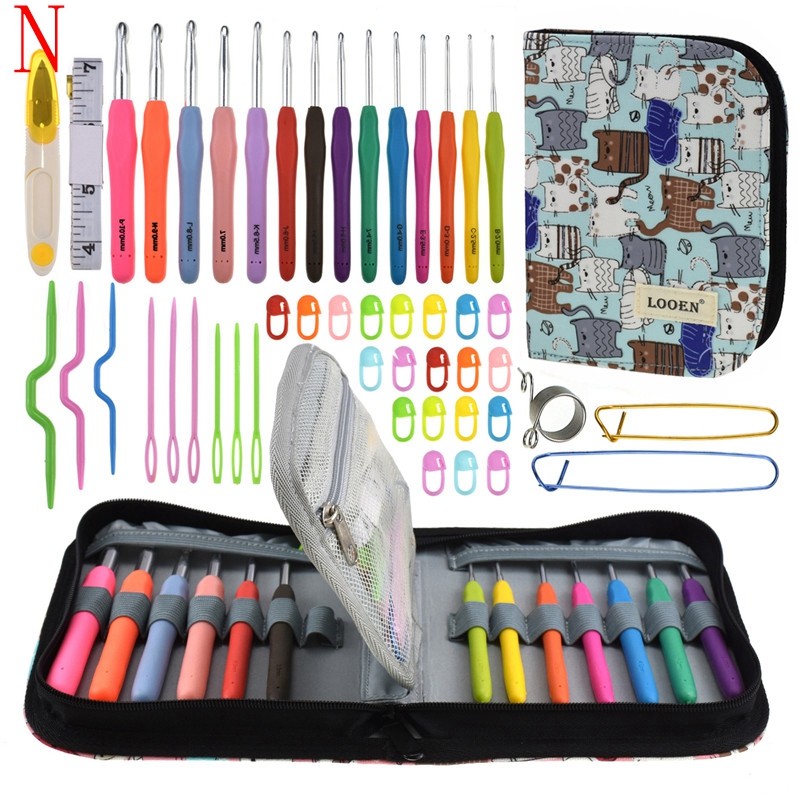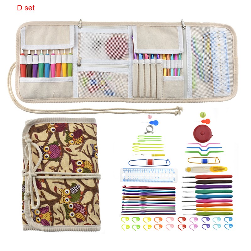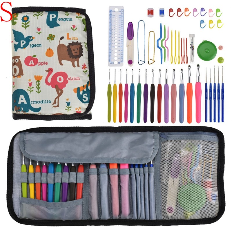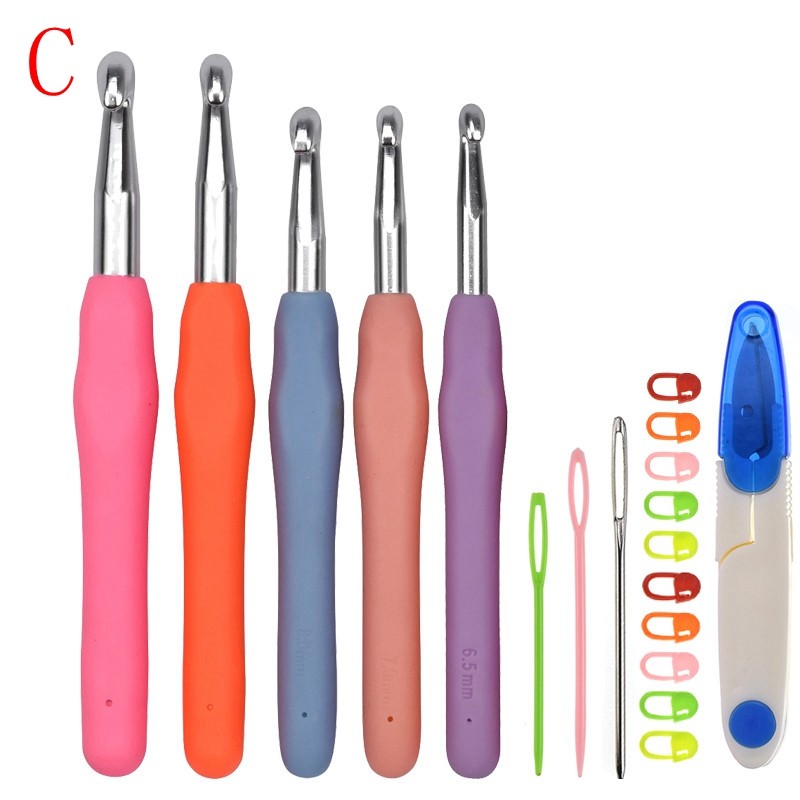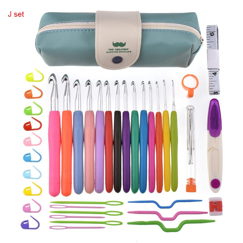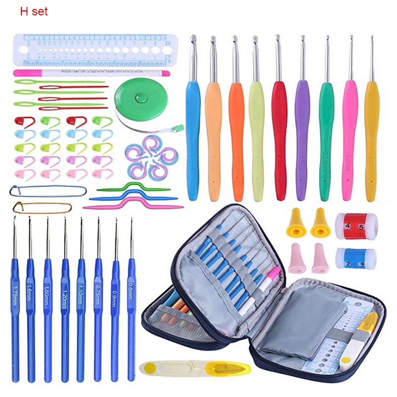 17 أنماط مجموعة إبرة كروشيه مجموعة مع الغزل الحياكة الإبر أدوات خياطة مجموعة متماسكة مقياس مقص غرزة حامل هوك للحياكة
