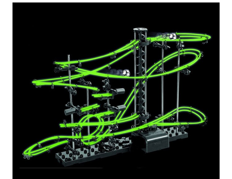عندما يتم بناء النموذج. نبدأ في وضع الكرة في بداية القضبان ، ثم الكرات تذهب إلى أسفل المسار وأحيانا تفعل السفينة الدوارة. عندما تسير على ما يرام وتصل في نهاية السكك الحديدية ، وسوف يتم أيضا رفع إلى الجزء العلوي من خلال سلم تعمل بالبطارية ، وتشغيل مرة أخرى. يحافظ على حركة ركوب الدراجات.