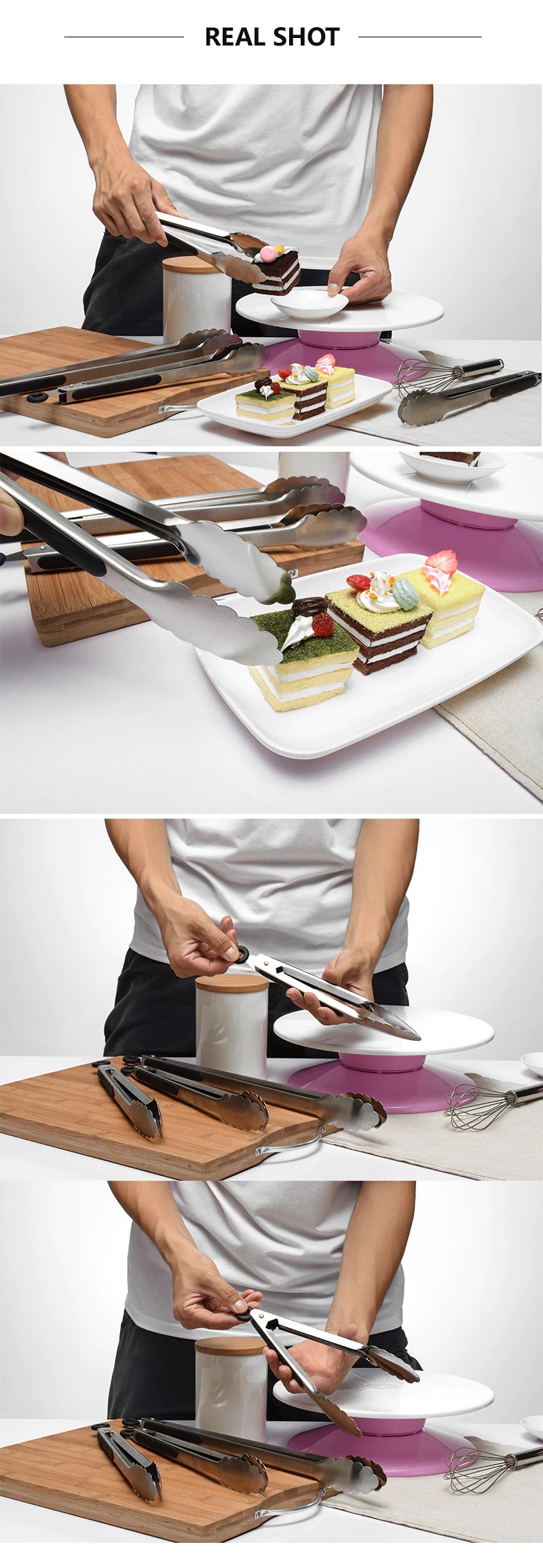 1 قطعة شواء الشوي تونغ سلطة كعكة الحلوى تقديم الطعام ملقط الفولاذ المقاوم للصدأ الشواء كليب المشبك الخبز الغذاء المطبخ أداة