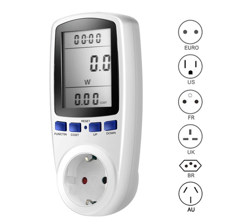220V AC EU 디지털 LCD 전력계 전력계 소켓 와트 Kwh 에너지 미터 FR 미국 영국 AU BR 측정 콘센트 전력 분석기