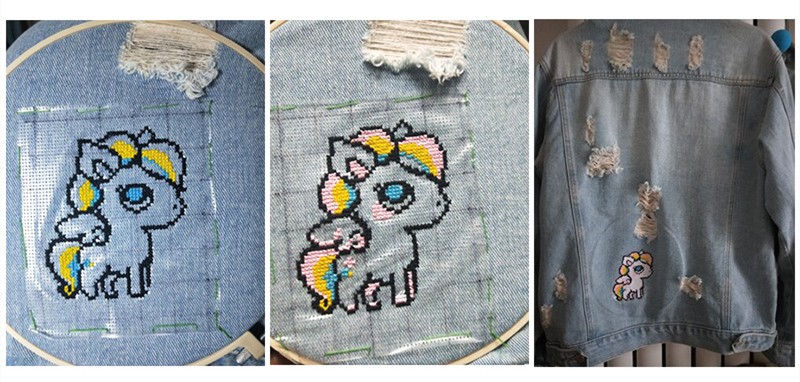 1. je kon kiezen welke patronen je wilt, tack de canvas om het item of materiaal en borduren zoals gebruikelijk.
