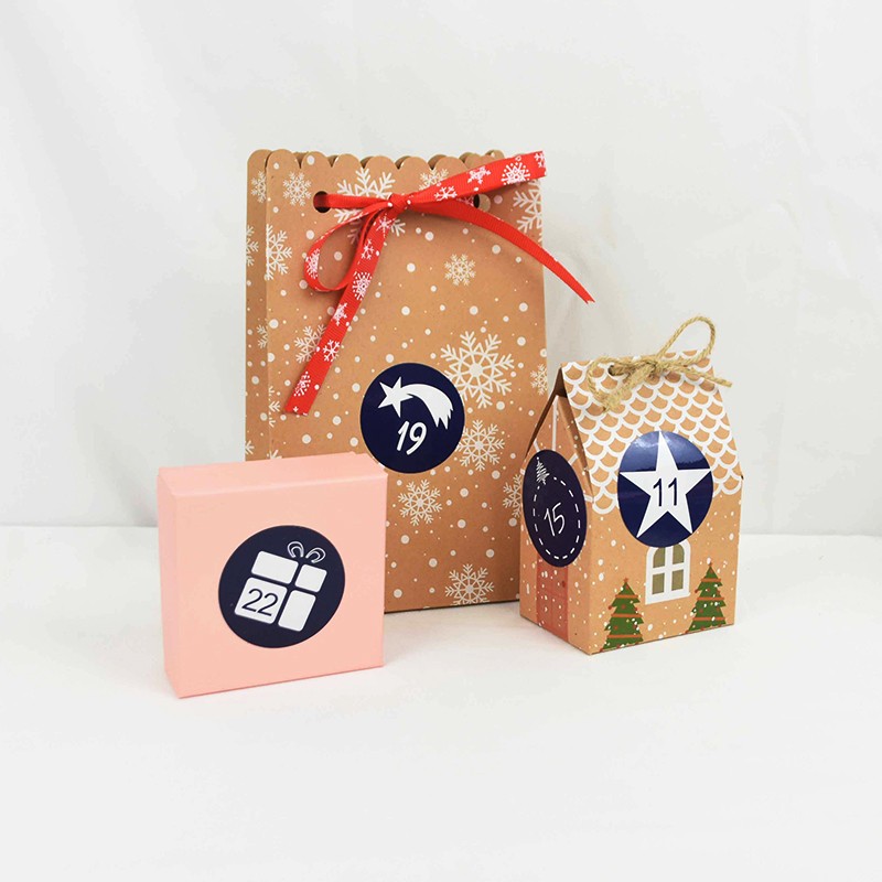 ملصقات تغليف متعددة الوظائف ، 24 قطعة ، تقويم عيد الميلاد رقم من 1 إلى 24 صندوق هدايا Diy حلوى بسكويت ، ملصقات