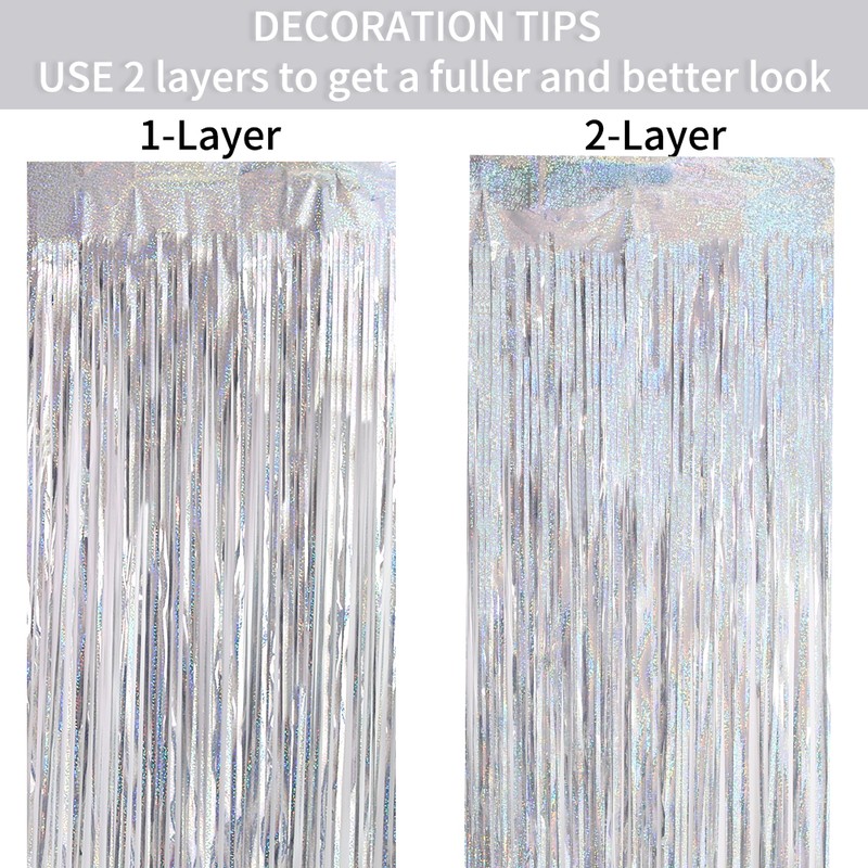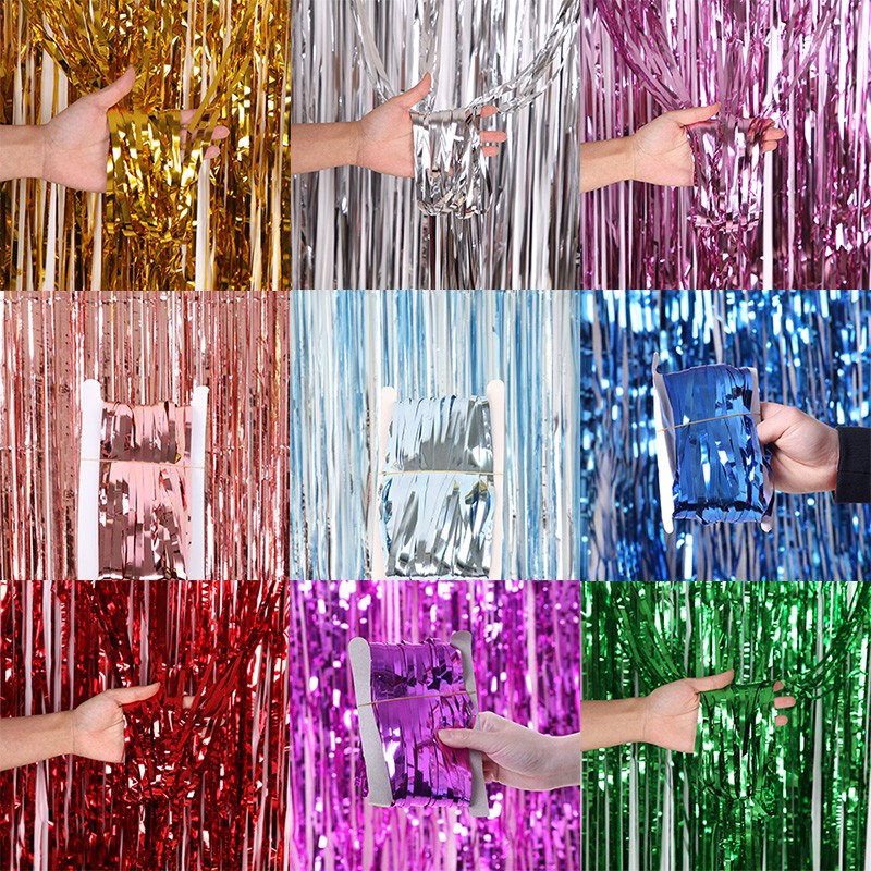 2 قطعة/الحزمة زينة حفلة عيد ميلاد العازبة ستارة خلفية للحفلات 2 متر بهرج احباط الستار الزفاف الديكور فوتوزون