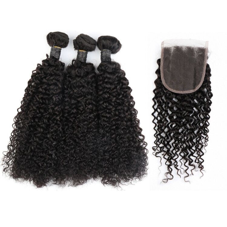 3 + 1 Verworrene Lockige Haarwebart Bundles Phantasie Jungfrau-Brasilianische Menschenhaar Verlängerung Tiefes Lockiges 3 Bündel Mit Verschluss Großhandel
