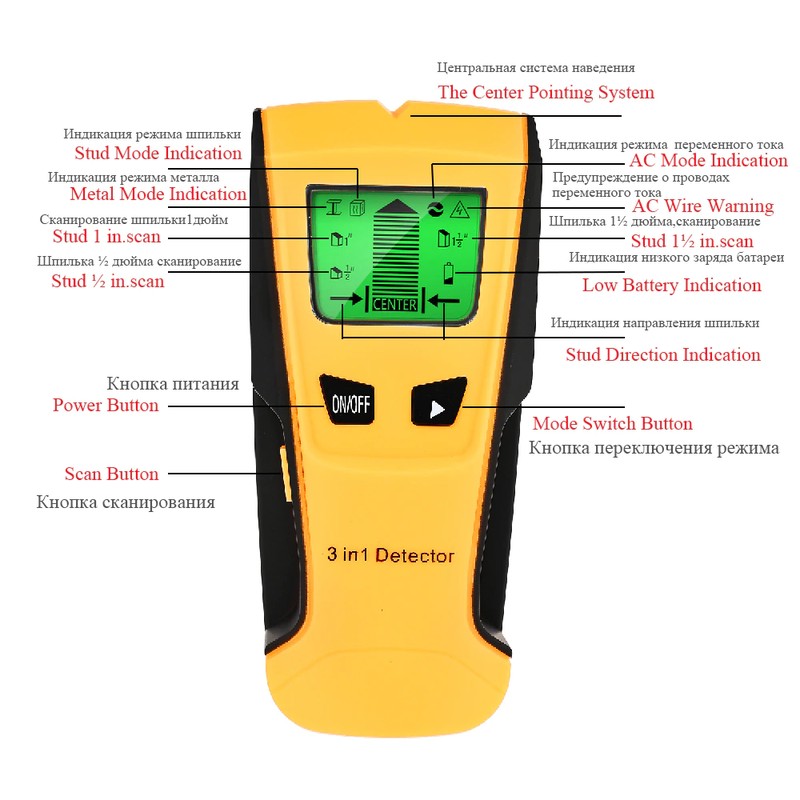 But: Rapidement localiser bois, métal et AC fils caché dans les murs, planchers et plafonds de maisons. Il peut travailler sur lattes, papier peint, planchers en bois, anti-bruit plafonds, pulvérisation-peint murs et d'autres endroits. Éviter le danger lors de l'installation TVs, armoires, garage racks, etc.