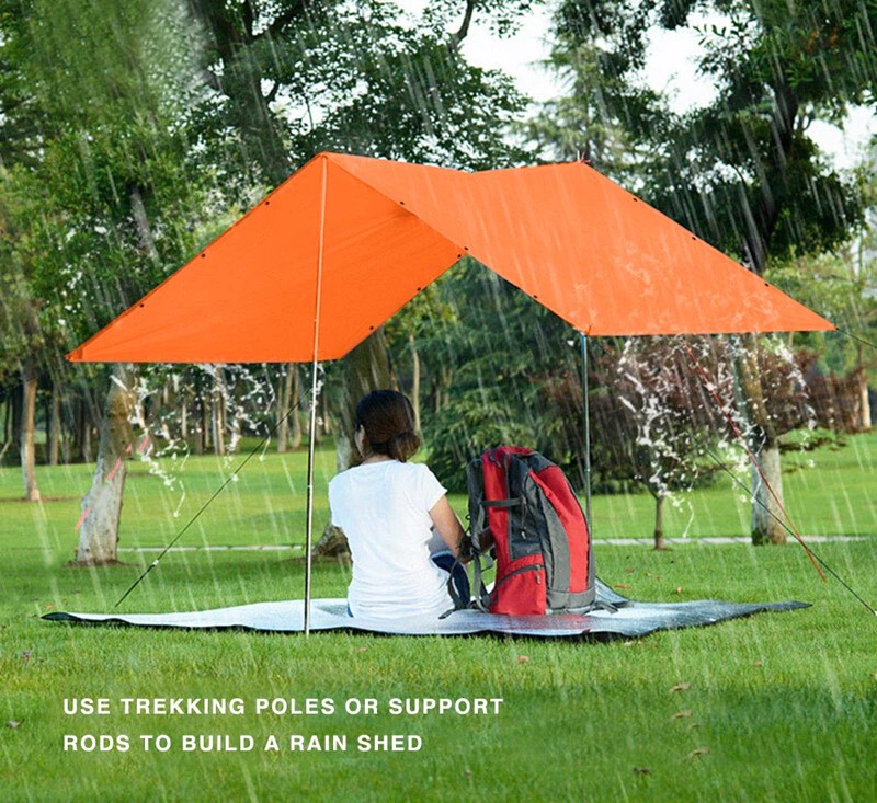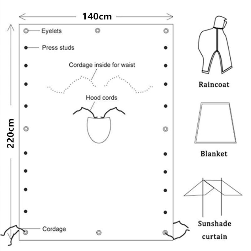 Multiusos. No solo se puede utilizar como impermeable, es una tienda de campaña, esteras a prueba de humedad, impermeable, refugio no se moja, cambio de esteras soleado, con una cuerda para hacer un pequeño toldo,. Evita el sol.