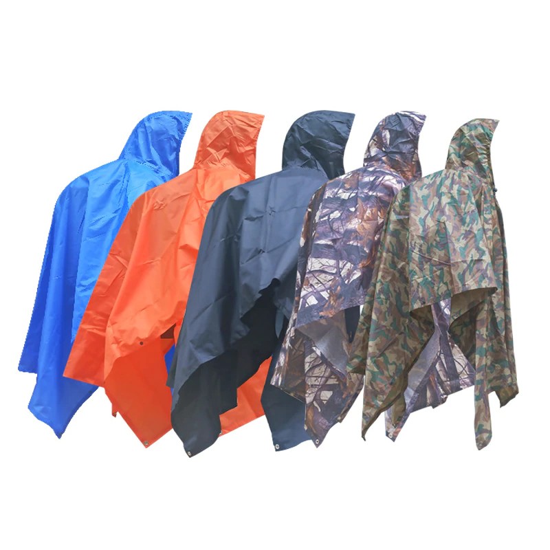 Poncho de lluvia de camuflaje con capucha Ripstop impermeable táctico militar multiusos para hombres y mujeres