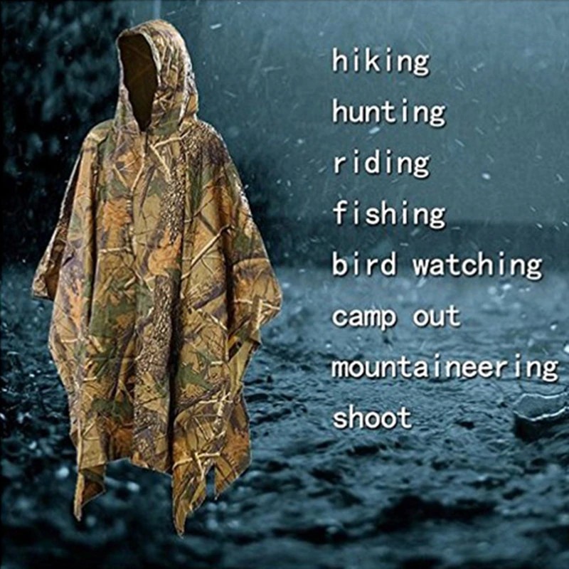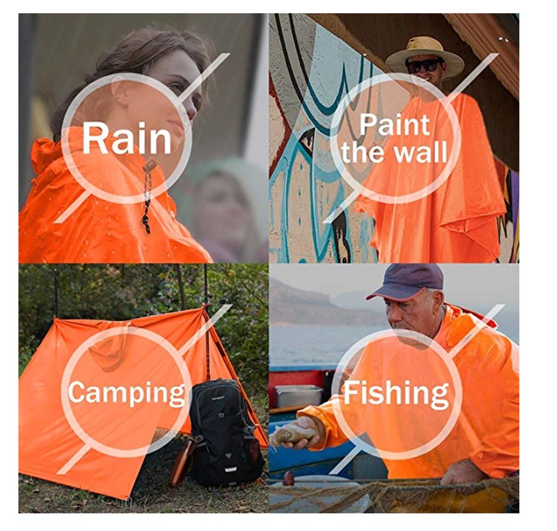 Varias aplicaciones. El poncho impermeable es ideal para supervivencia, Camping, pesca, caza, militar, táctico y todas las demás actividades al aire libre, así como disfraces de Halloween.