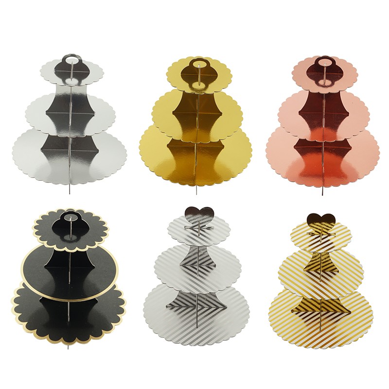 3-Camada De Papel Bronzeamento Bolo Suporte Festa De Aniversário Decoração Do Bolo Casamento Diy Artesanato Papel Sobremesa Exibir Carrinho De Bolo Ferramentas
