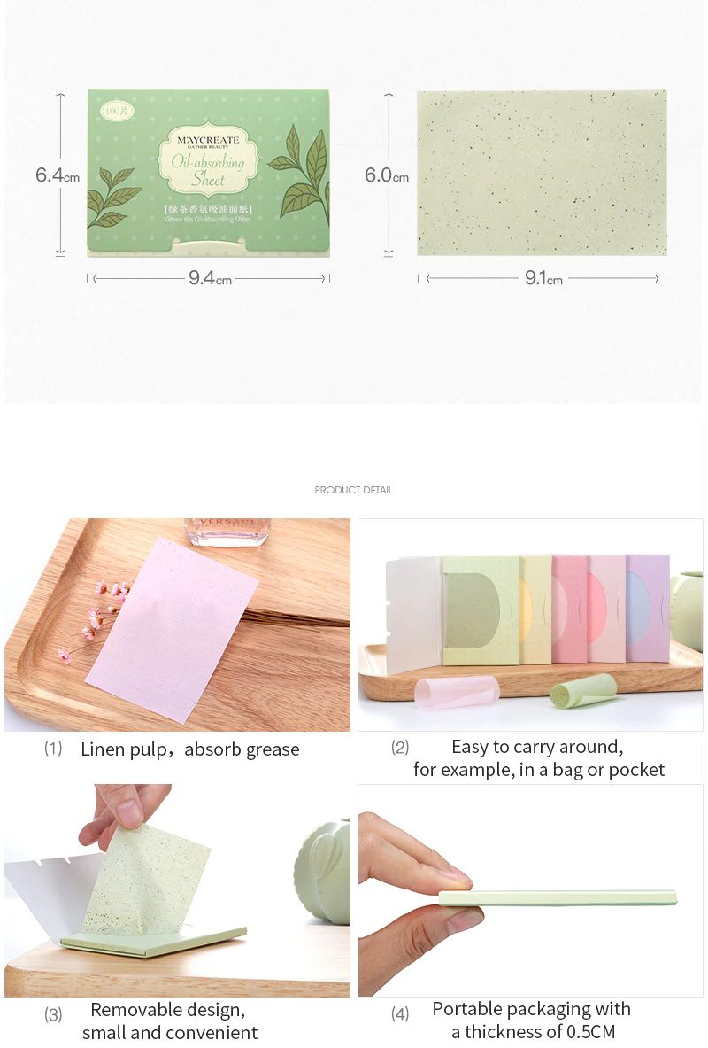 300Pcs/3Pack Groene Thee Gezicht Absorberend Olie Controle Papier Doekjes Olie Verwijdering Absorberend Vel Matcha Vette Gezicht vloeipapier