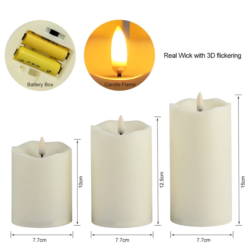 Ensemble de 3 bougies sans flamme à LED télécommandées, bougies de nouvel an à piles, bougies de pâques avec emballage