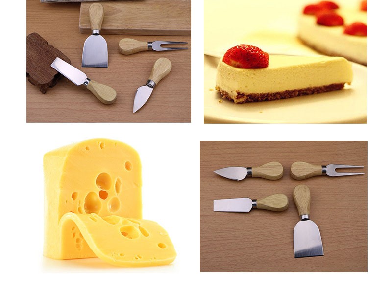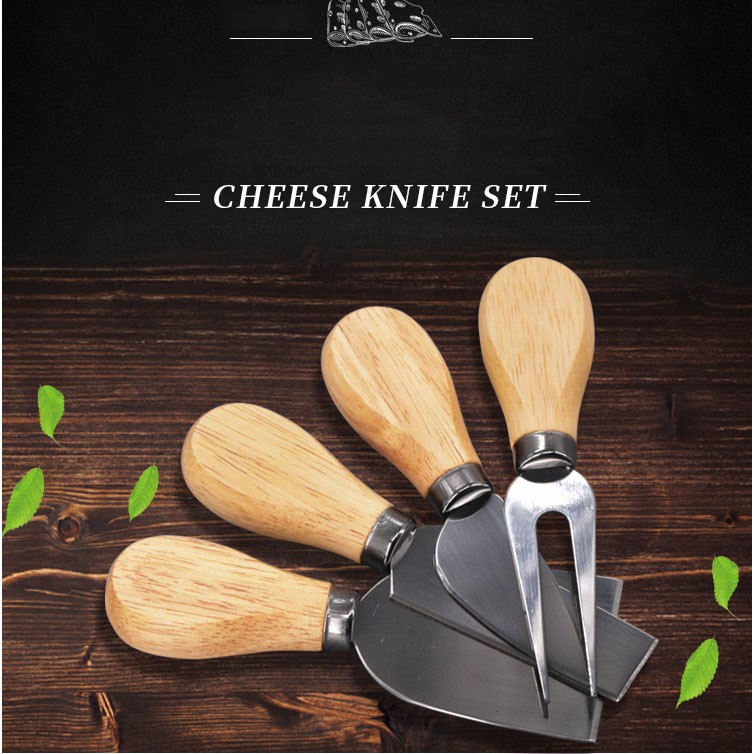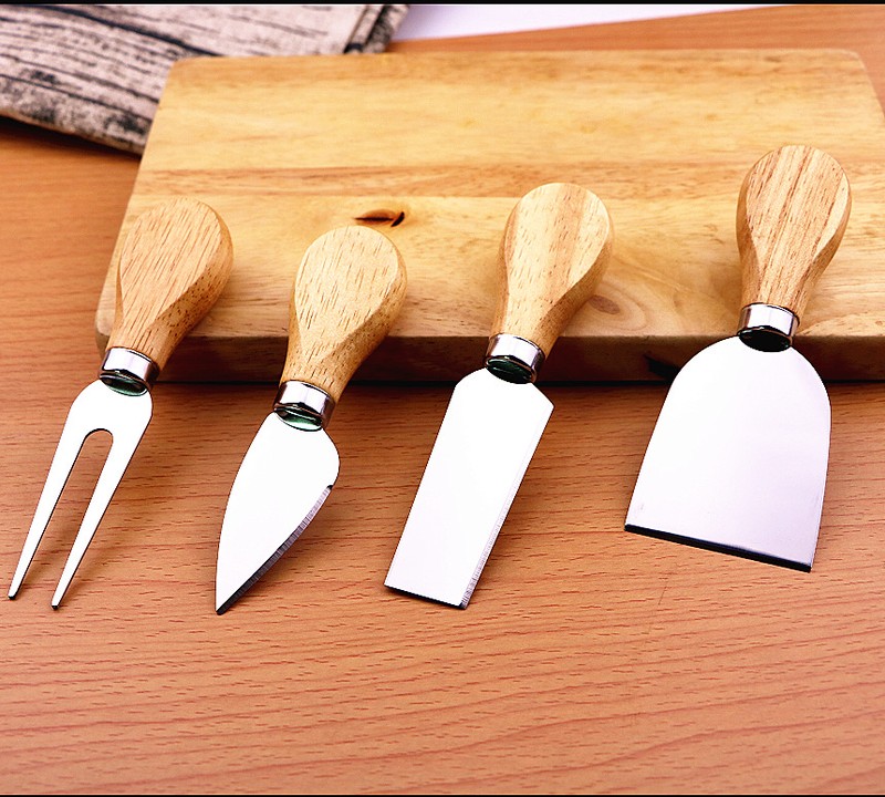 4Pcs/Set Wood Handle Knife Sets Bamboo Cheese Cutter Slicer Cheedse Stainless Steel Knife Cooking Accessories