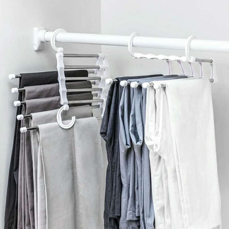 5 In 1 Pant Rack For Clothes Multifunction Shelves Closet Storage Stainlesssteel Magic Trouser
