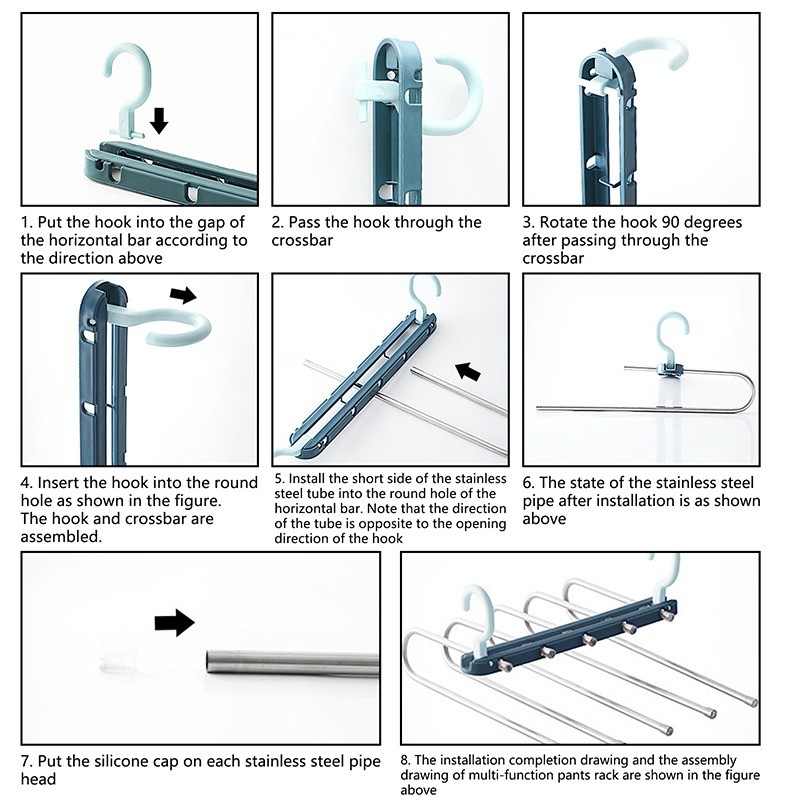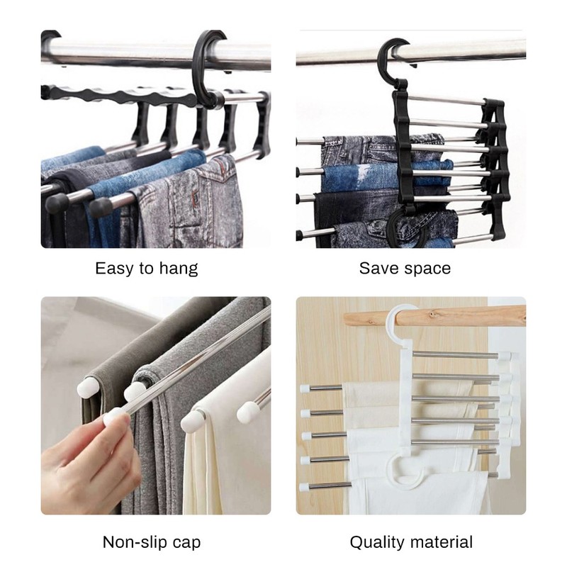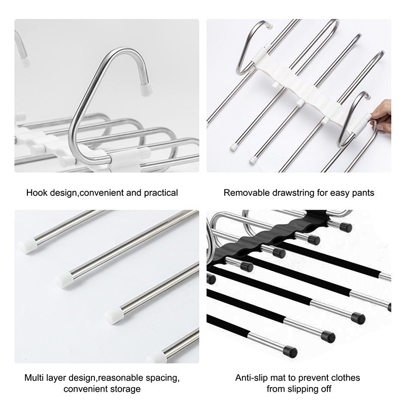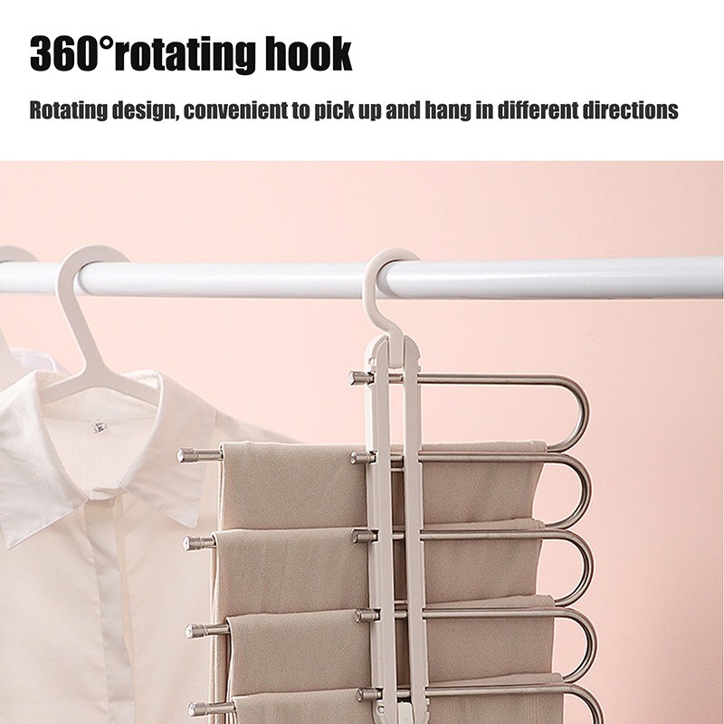 5 in 1 Pant Rack Hanger for Clothes Organizer Multifunction Shelves Closet Storage Organizer StainlessSteel Magic Trouser Hanger
