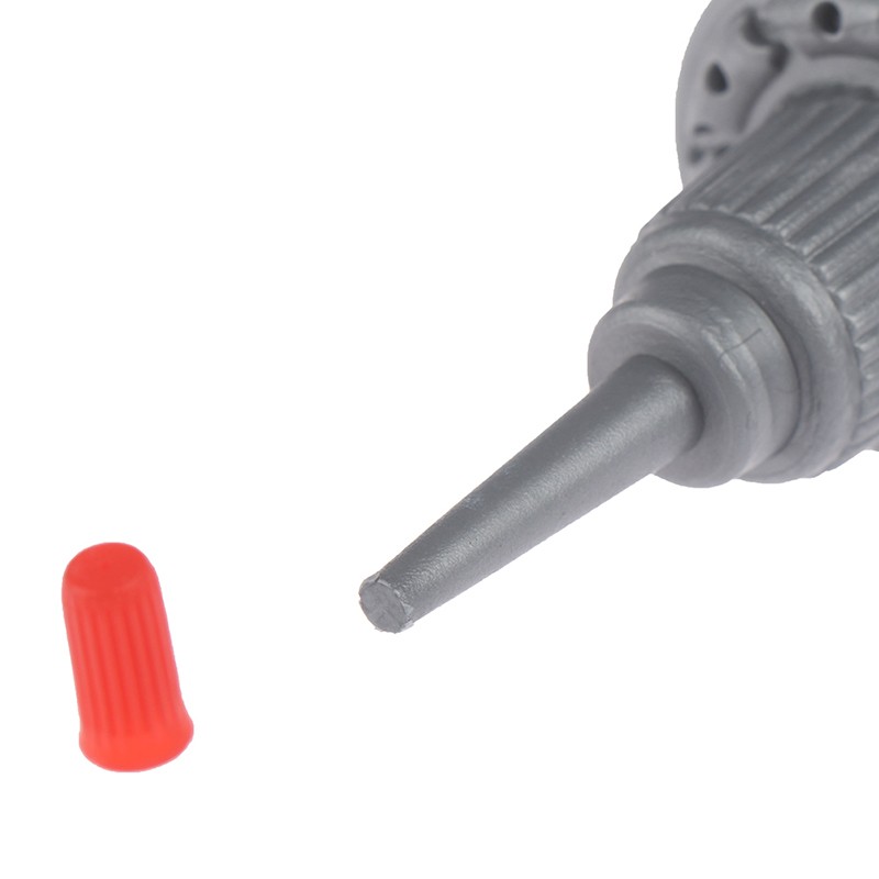 1.接着剤シールを開き、キャップを反時計回りにねじ込みます。 キャップの赤い点は少し沈むでしょう (白いカバーを引っ張らないでください)