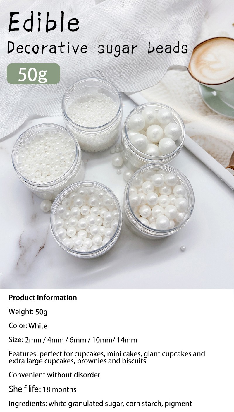 50G Essbare Weiß Perlen Perle Zucker Ball Fondant Diy Kuchen Backen Streusel Zucker Candy Ball Hochzeit Kuchen Dekoration Kostenloser Verschiffen