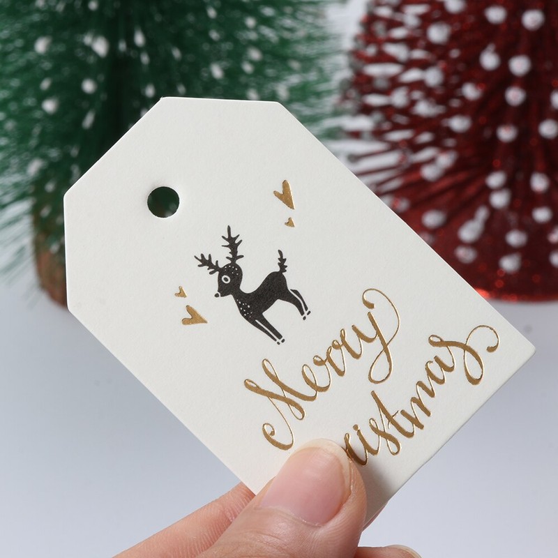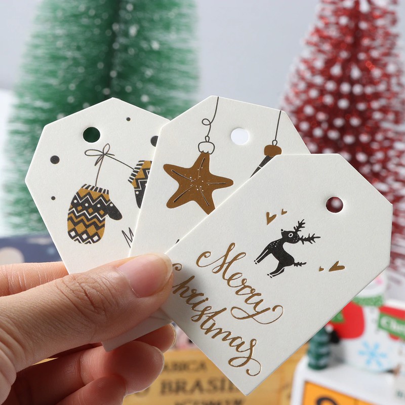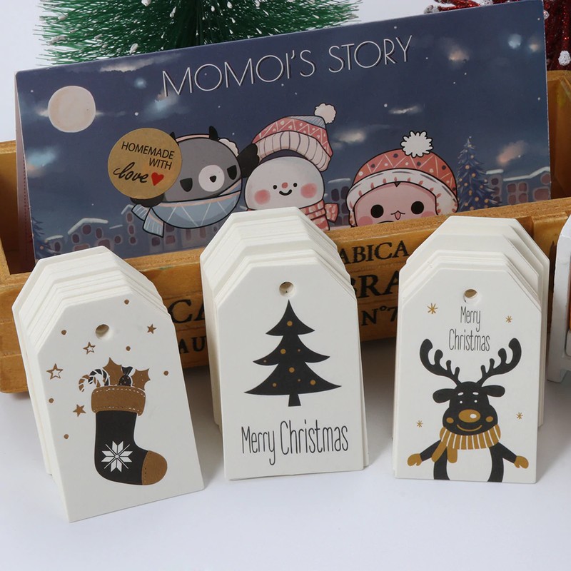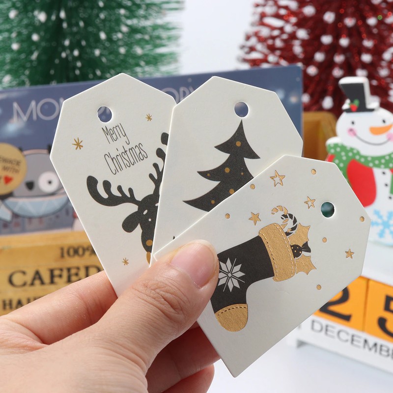 50Pcs DIY 크래프트 태그 메리 크리스마스 레이블 선물 포장 종이 교수형 태그 산타 클로스 종이 카드 크리스마스 파티 용품 선물