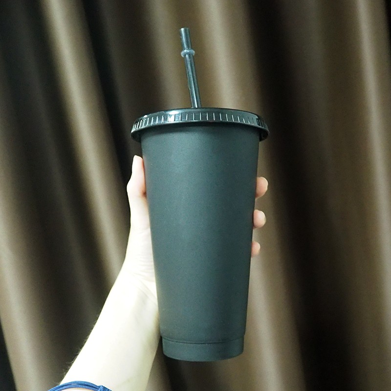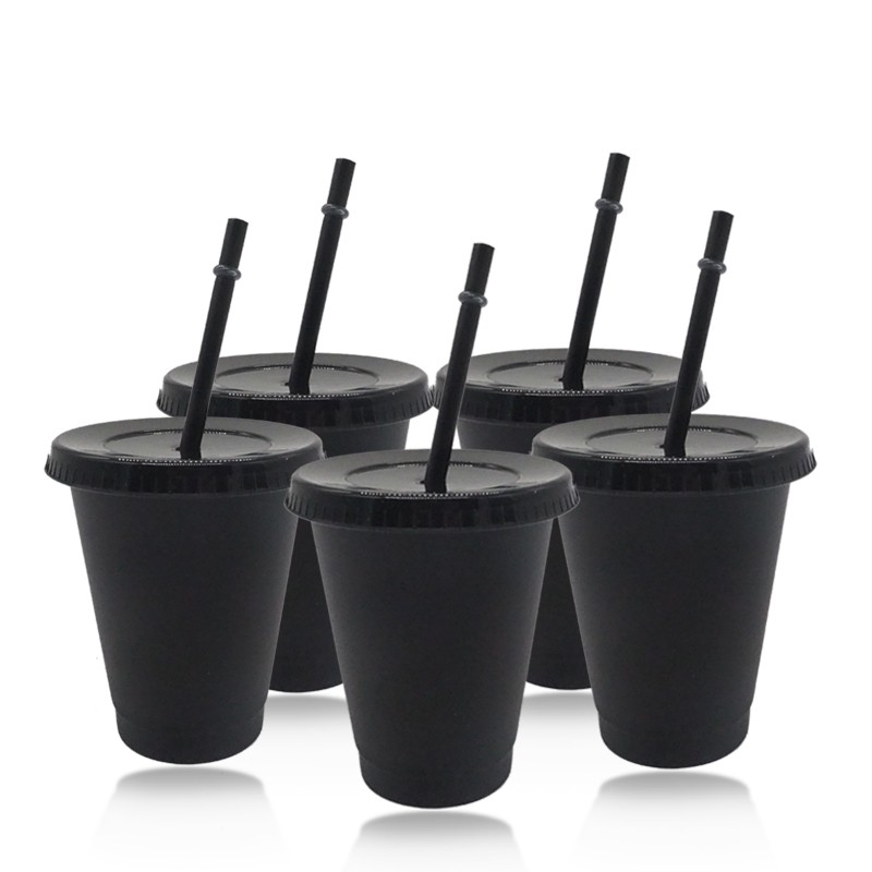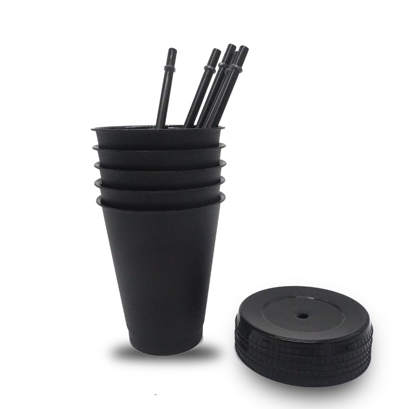 5Pcs 473Ml/700Ml Preto Garrafa De Água Fria Copo De Plástico Reutilizável Com Tampa E Palha Magia Copo Personalizado Copo Caneca De Café