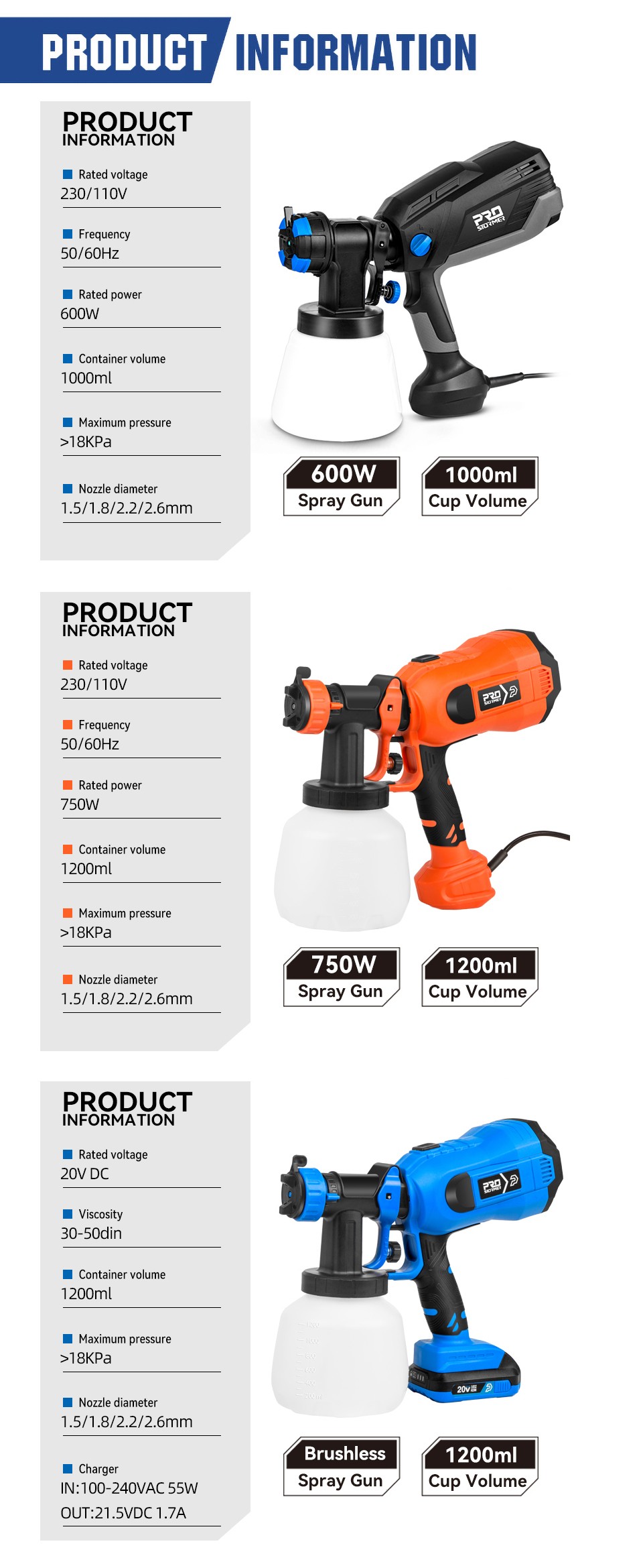 • 600W Elektrikli Püskürtme Tabancası 4 Meme Boyutları 1000Ml Hvlp Ev Boya Püskürtücü Akış Kontrol Airbrush Kolay Püskürtme Tarafından Prostormer
