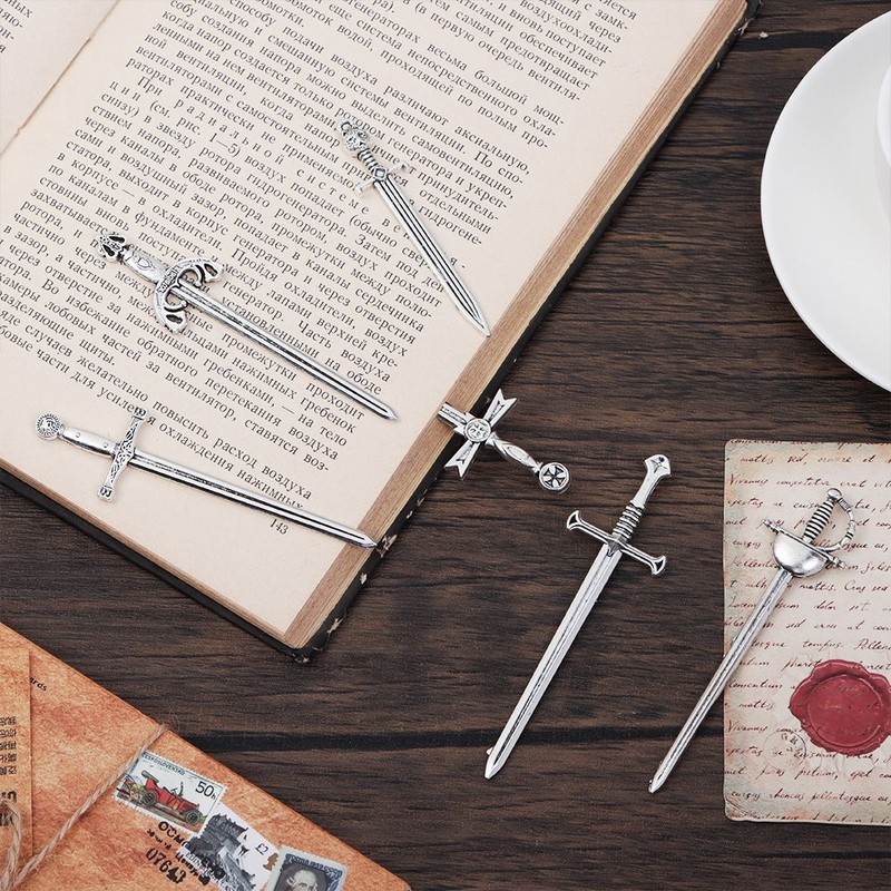 6 Stks/Set Antieke Zwaarden Mes Bookmark Charms Metalen Bladwijzers Hangers Boek Clips Markers Craft Supplies Diy Sieraden Maken