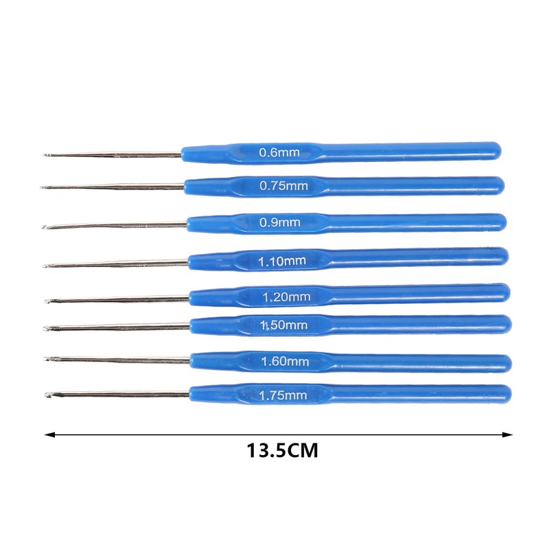 8 x Голубые Пластик маленькие вязальные крючки (0,6 мм 0,75 мм 0,9 мм 1,1 мм 1,2 мм 1,5 мм 1,6 мм 1,75 мм)