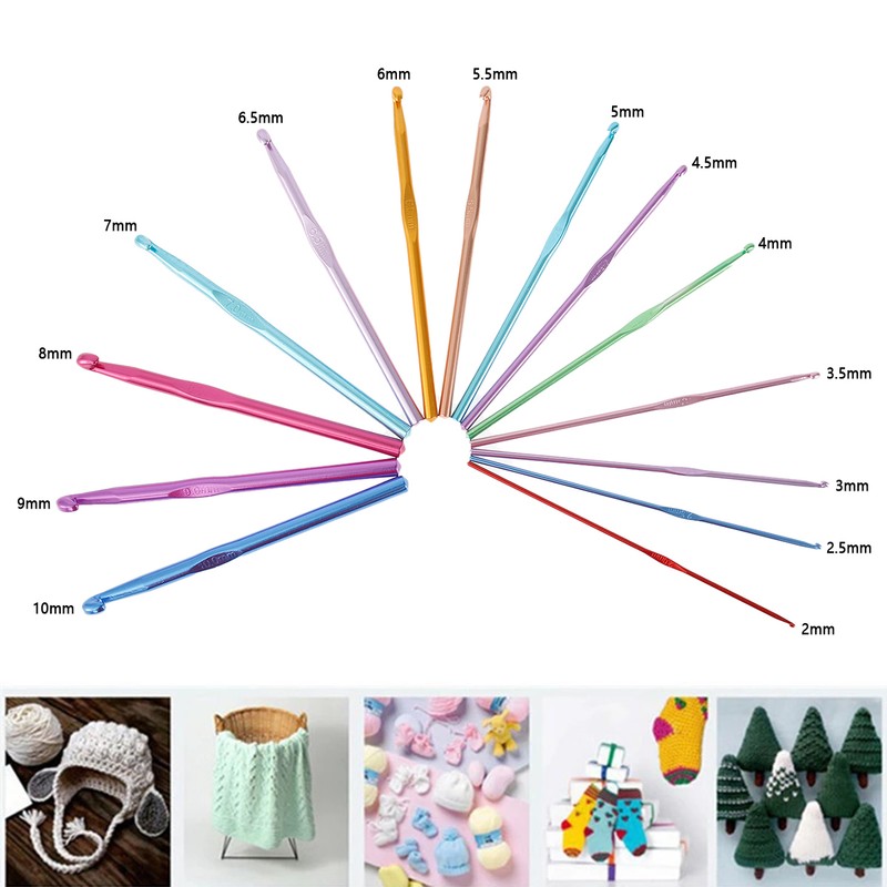 Цвет вязальный крючок (14 шт.): 2 мм, 2,5 мм, 3 мм, 3,5 мм, 4 мм, 4,5 мм, 5 мм, 5,5 мм, 6 мм, 6,5 мм, 7 мм, 8 мм, 9 мм, 10 мм