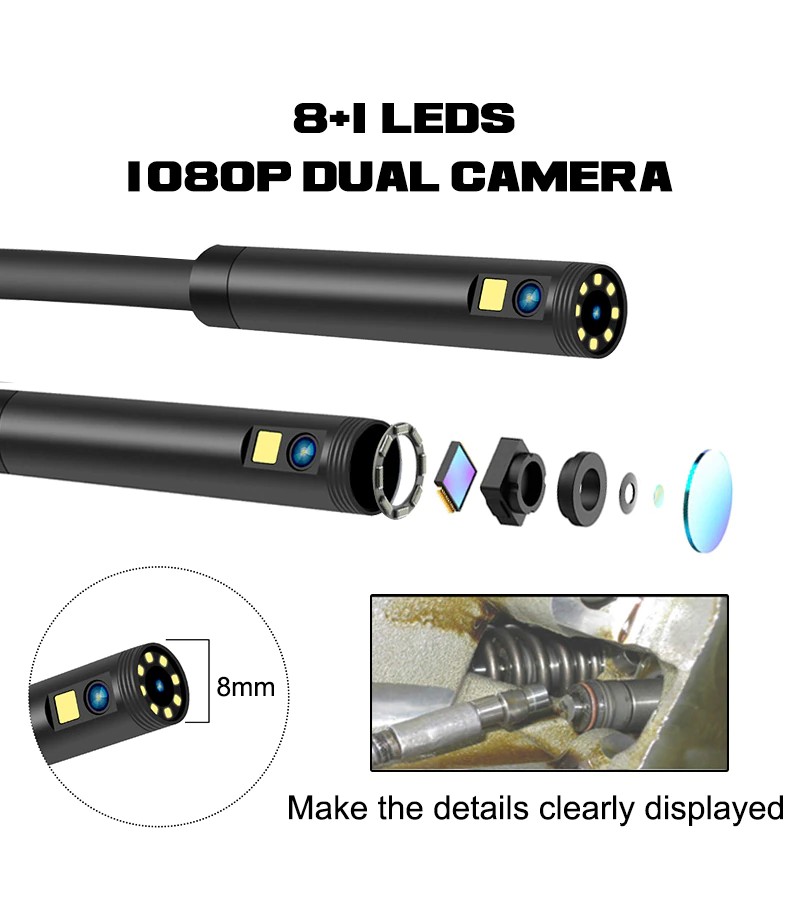8 millimetri Endoscopio Macchina Fotografica di IP67 Impermeabile Industriale Periscopio con 4.3 inch Highlight Doppio Schermo della Macchina Fotografica LED Macchina Fotografica di Controllo del Tubo Duro cavo Endoscopio
