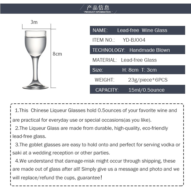 Een Set Van 6 0.3/0.5 Gram-Machine Gemaakt Loodvrij Glas Wijn Glazen Voor Chinese Drank, 10Ml/15Ml Zal Worden Gebruikt