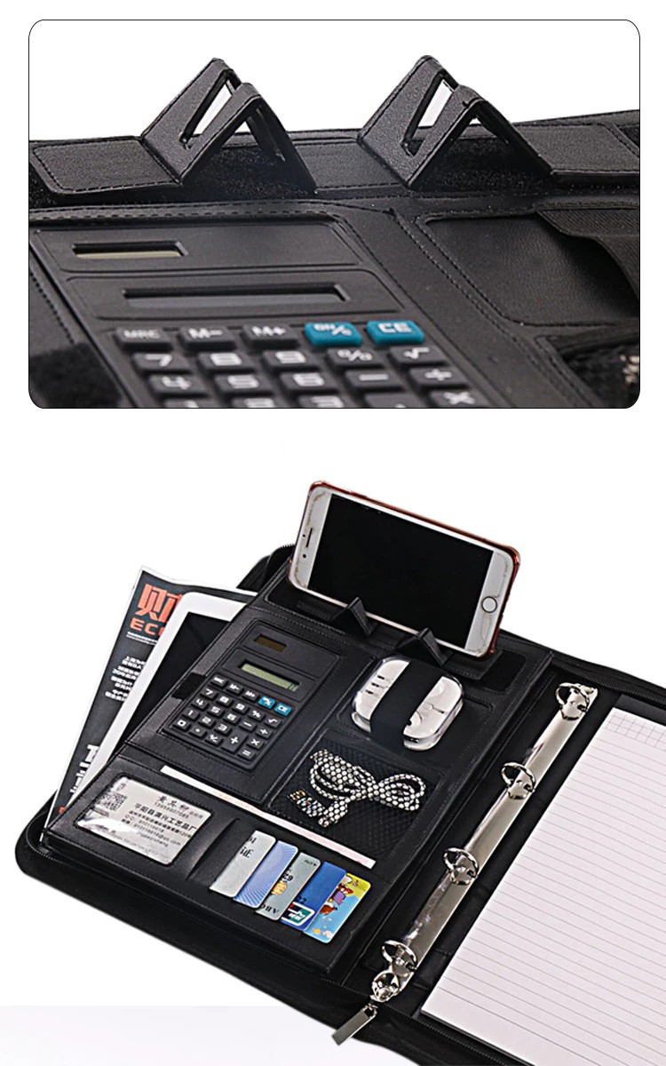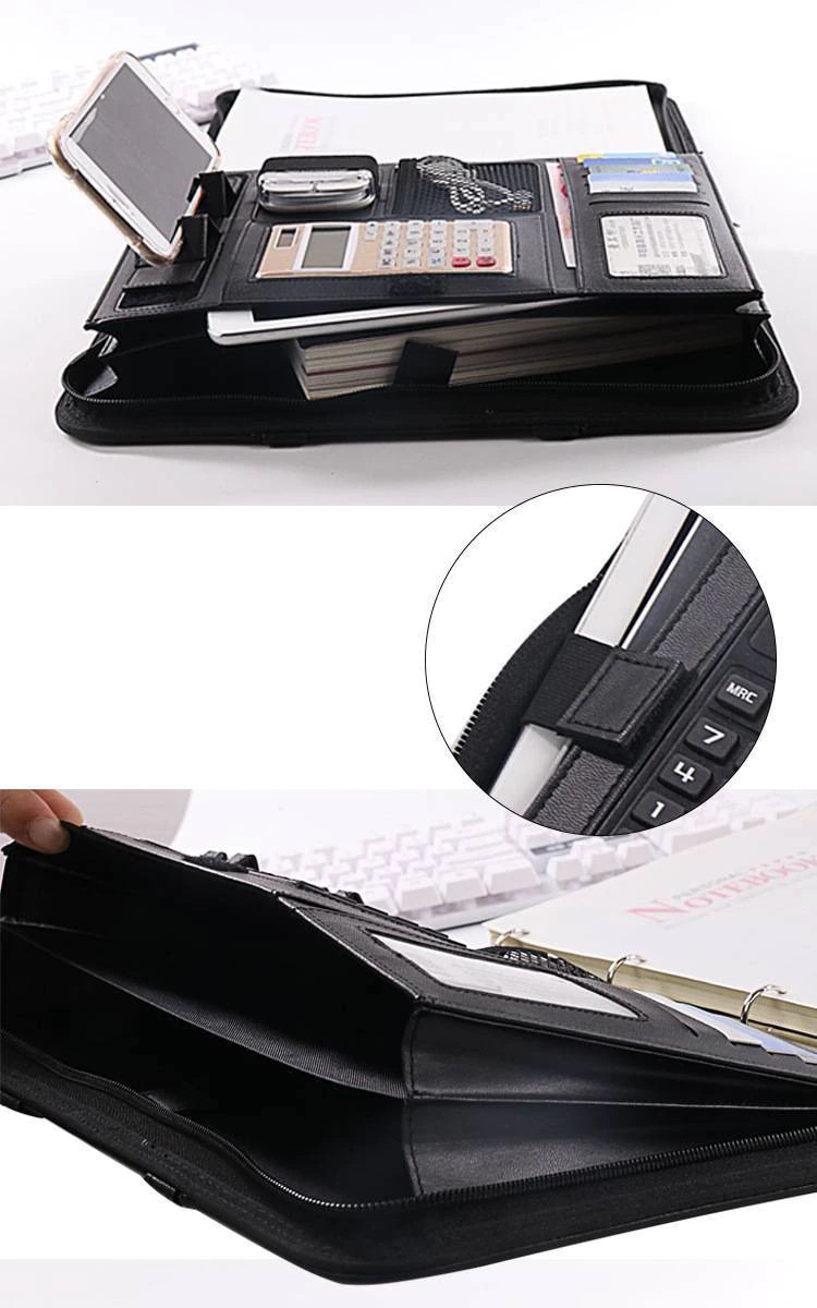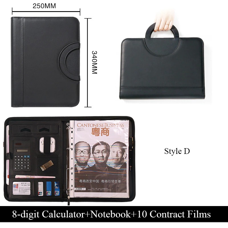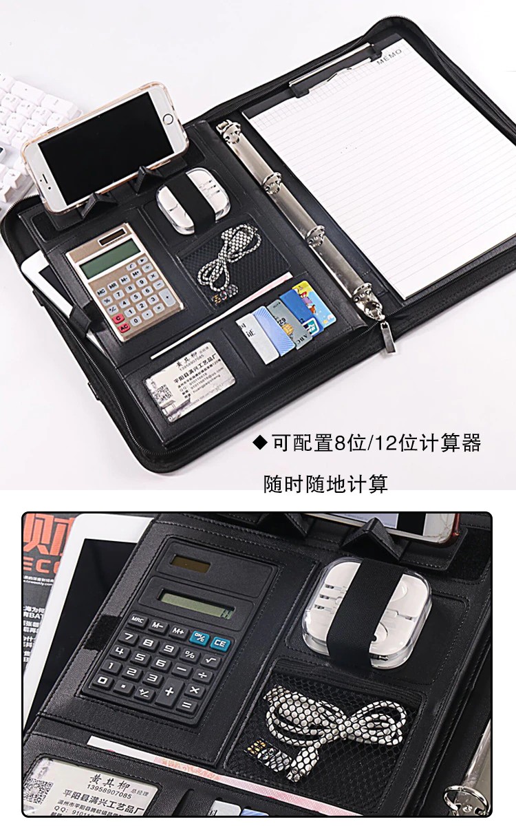 Pasta Para Documentos Portátil A4 Com Calculadora, Organizador De Fichário, Gerenciador De Documentos Escritório Pasta Pu, Bolsa Padfólio De Couro Personalizável
