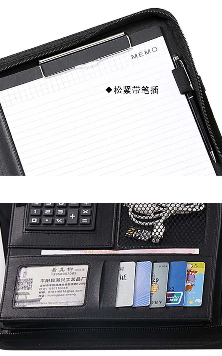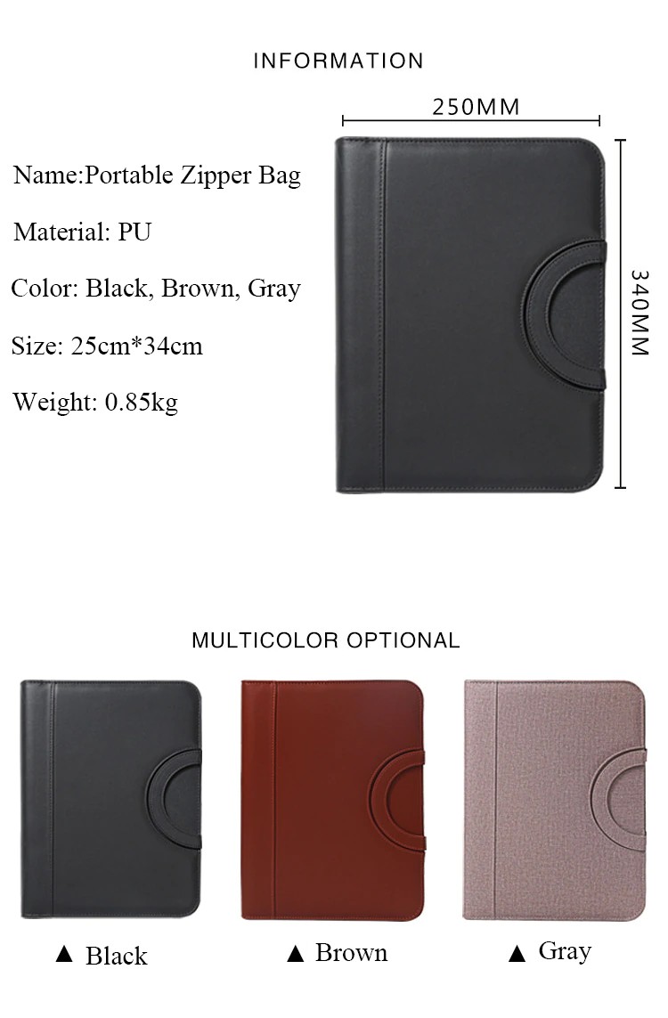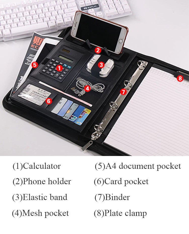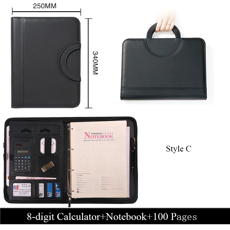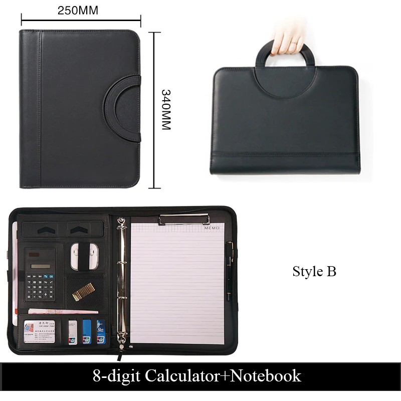 Pasta Para Documentos Portátil A4 Com Calculadora, Organizador De Fichário, Gerenciador De Documentos Escritório Pasta Pu, Bolsa Padfólio De Couro Personalizável