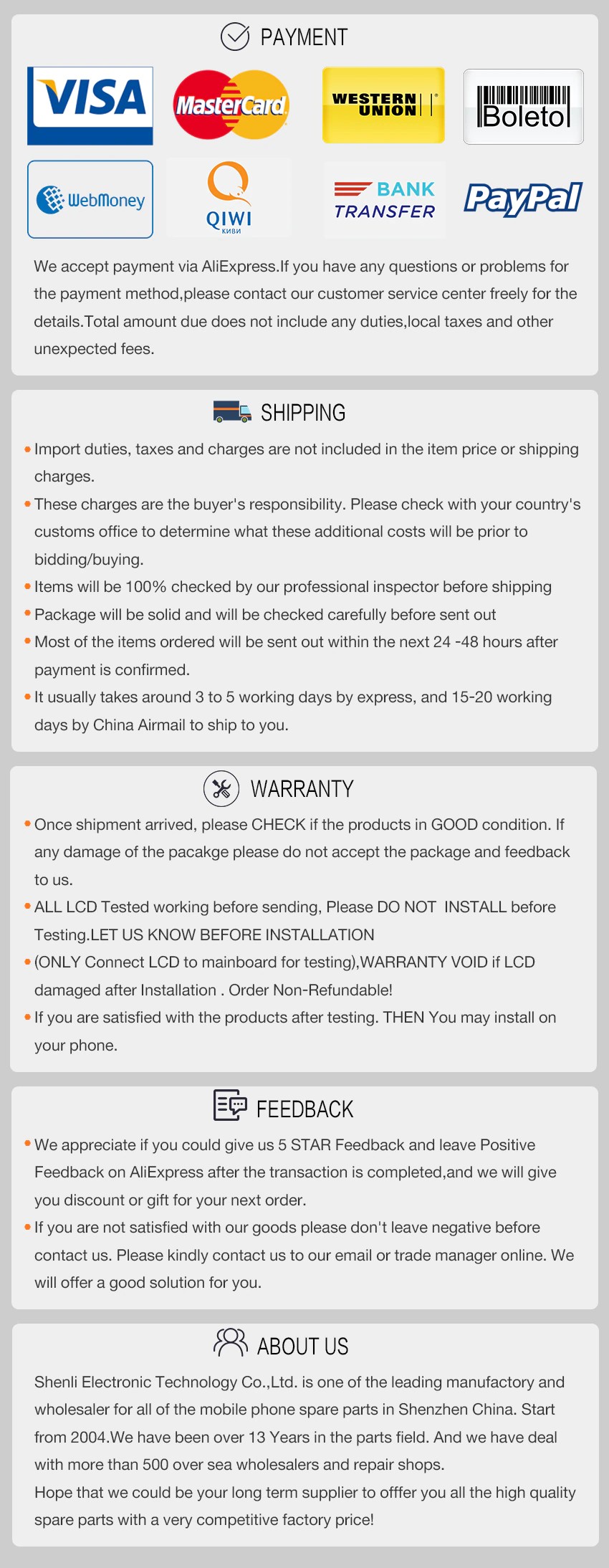 5. 배송 전에 테스트 및 100% 잘 작동.