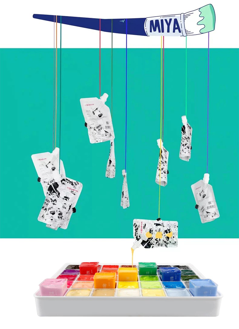 1 Bag Miya Himi الغواش عبوة 100 مللي ألوان فريدة من نوعها هلام نابض بالحياة غير سامة الدهانات للفنانين والطلاب ، اللوحة مبهمة