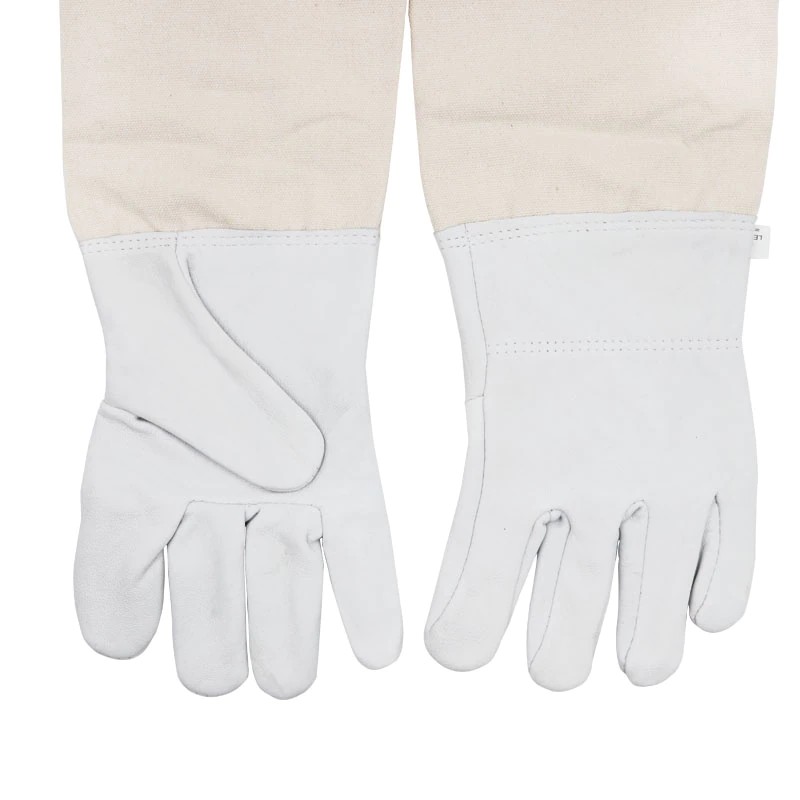 قفازات تربية النحل واقية الأكمام تنفس شبكة صفراء جلد الغنم الأبيض والقماش لقفازات تربية النحل تربية النحل