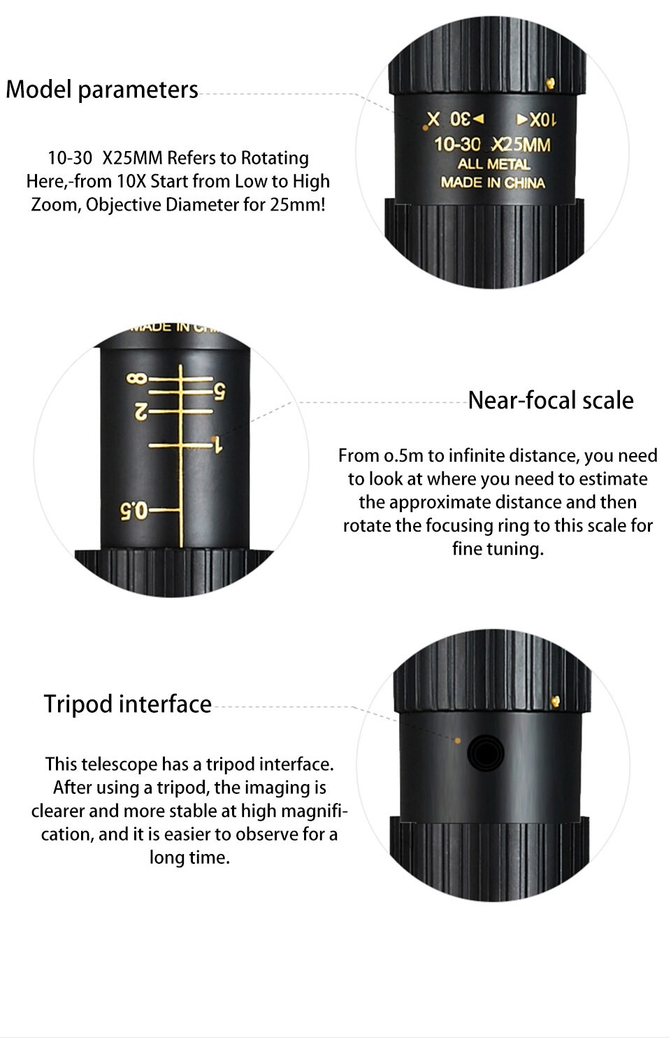 10-300X40 المعادن أحادي العين Hd التكبير تلسكوب المحمولة مناظير قوية مع ترايبود و حامل هاتف للسفر التخييم