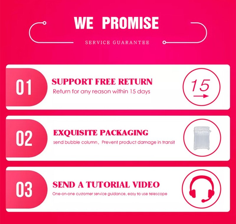 عزيزي المشتري ، إذا كنت لا تعرف كيفية استخدام التلسكوب بعد استلامه ، يرجى الاتصال بنا. إذا كان لديك أي أسئلة أخرى ، يمكنك أيضا الاتصال بنا في أي وقت. سنبذل قصارى جهدنا لمساعدتك في حلها ، شكرًا لك!