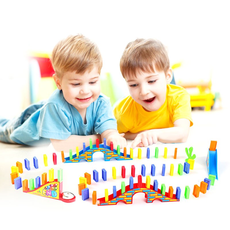 100 قطعة دومينو كتل قطار اللعب البلاستيكية اللون الاطفال التعليم المبكر الدومينو الطائرة ألعاب للأطفال صبي Girsl هدية الكريسماس