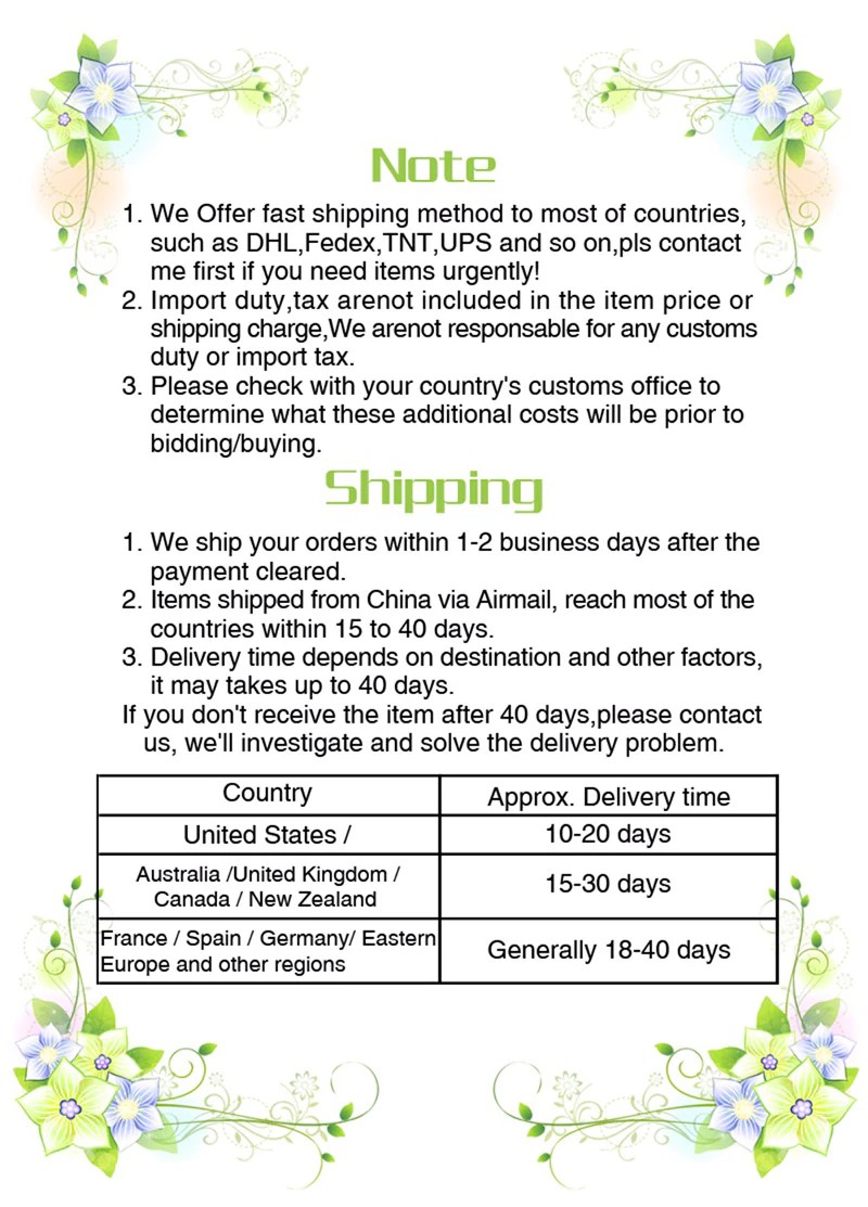 اللون: أسود/ذهبي/فوشيا/عنابي/أحمر/أزرق ملكي/أزرق فاتح/لافندر/أرجواني/وردي/أبيض/قهوة/عاجي/أخضر فاتح