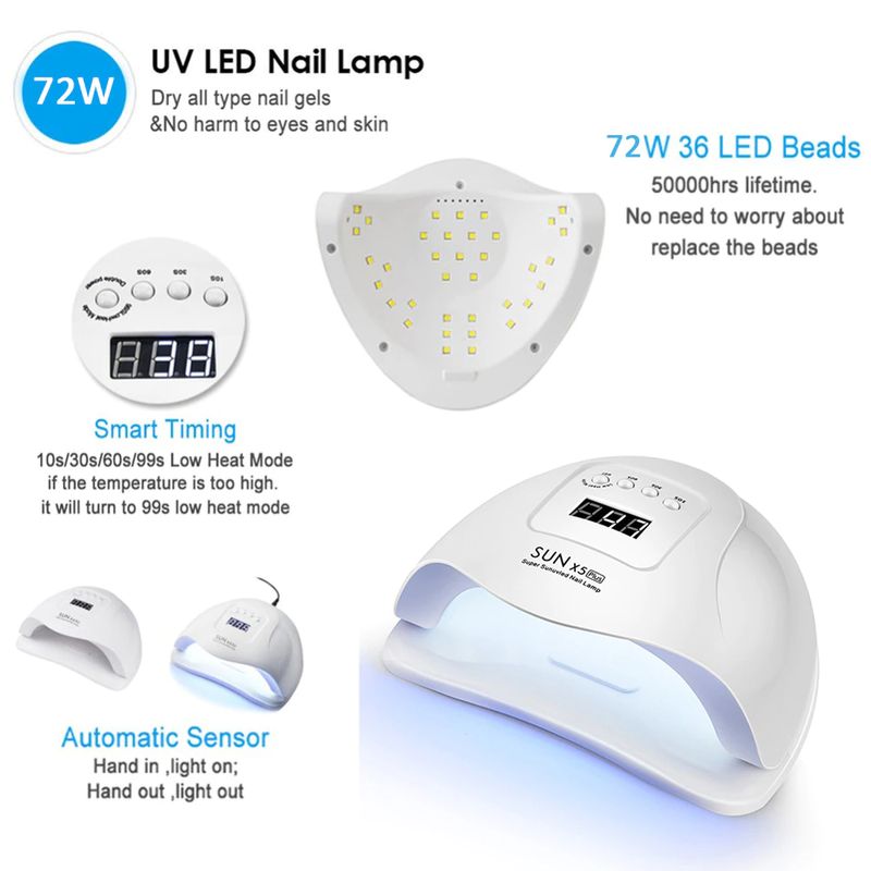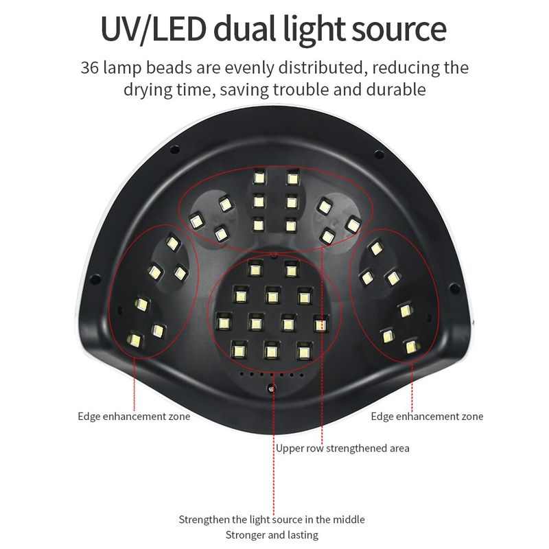 114/90/72/36 واط مصباح طلاء الأظافر بأشعة فوقة البنفسجية مسمار مجفف لتجفيف مانيكير جميع طلاء الأظافر مع 30/60/90S الموقت مستشعر تلقائي Led عرض الوقت