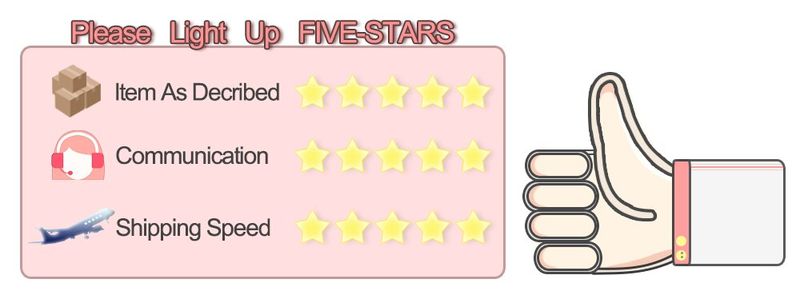 1.إذا كنت ترغب في منتجاتنا ، فإننا نأمل كثيرا في الحصول على تقييم خمس نجوم وردود الفعل.