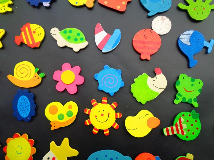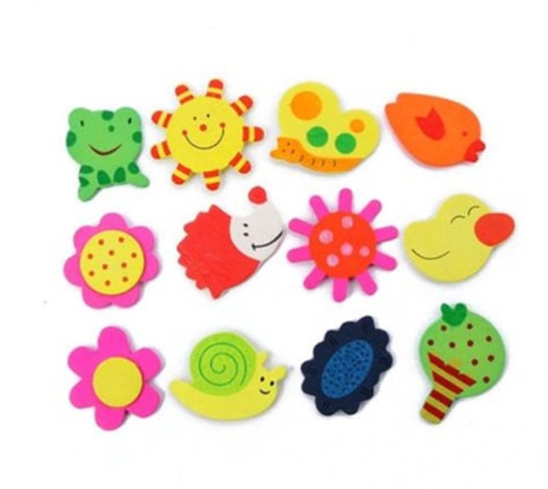 طفل طفل التعليمية ، 12 قطعة مضحك وملونة الكرتون خشبية ملصقا مغناطيس الثلاجة.