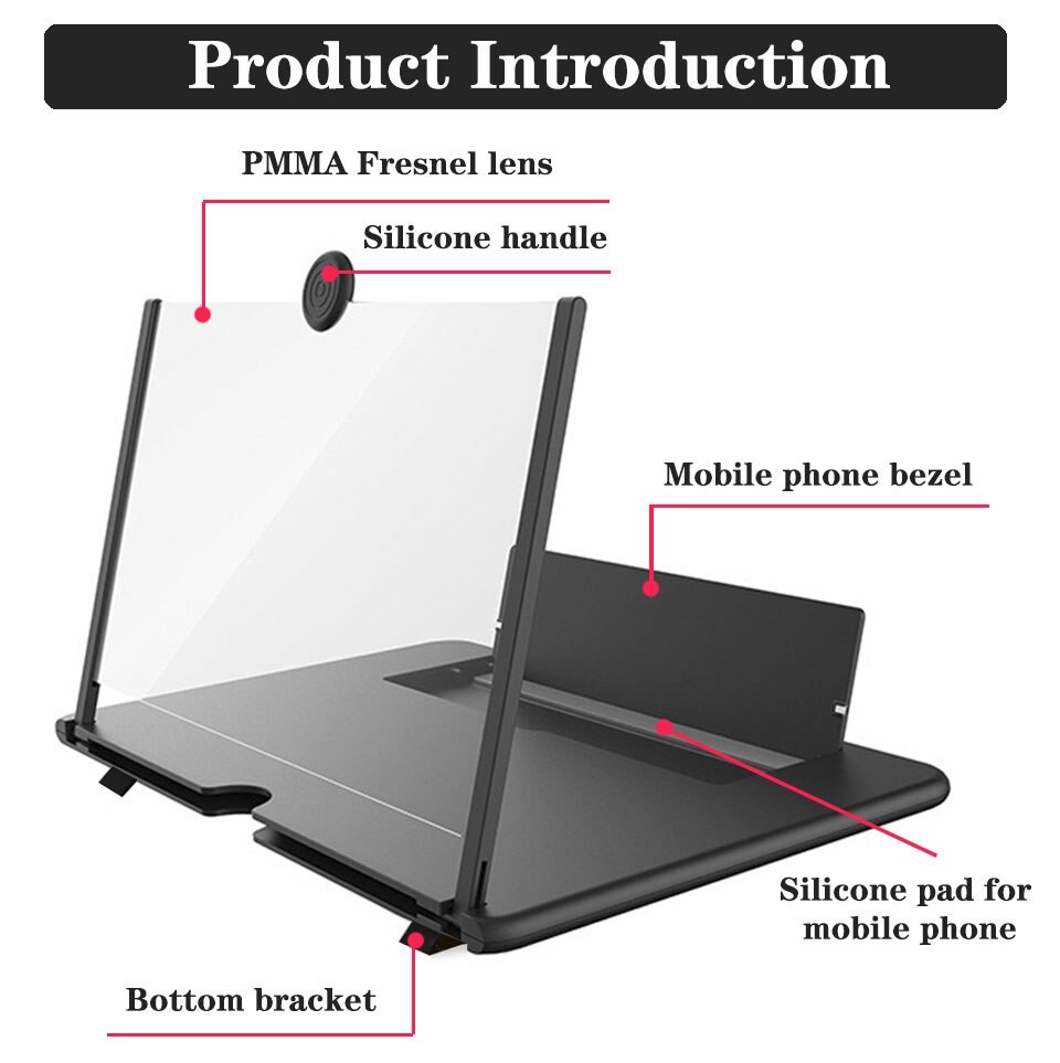 14 بوصة ثلاثية الأبعاد شاشة الهاتف المحمول المكبر Hd فيديو مكبر للصوت دعامة حامل مع فيلم لعبة مكبرة للطي حامل مكتب الهاتف