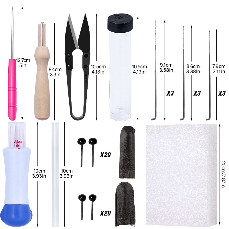 العبوة 7: إبر التلبيد + مجموعة واحدة من أداة التلبيد + 16 لونًا من الصوف المتجول