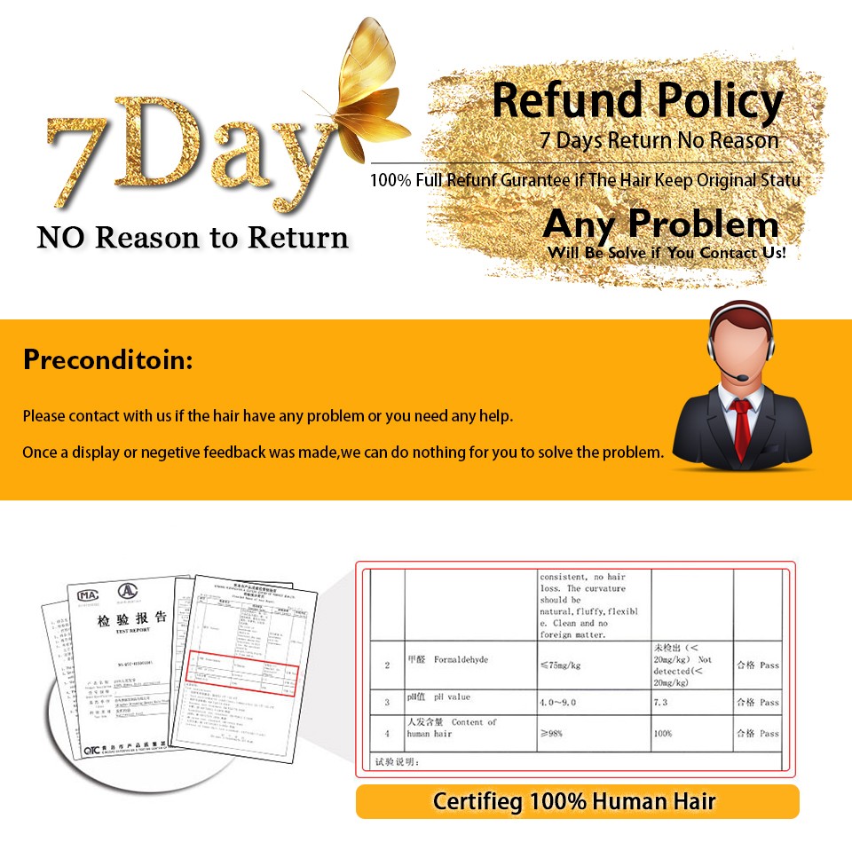 نحن نقدم "أي سبب للعودة" ، 100% ضمان استرداد كامل إذا كان الشعر يحتفظ الحالة الأصلية. سيتم حل أي مشكلة إذا كنت الاتصال بنا.