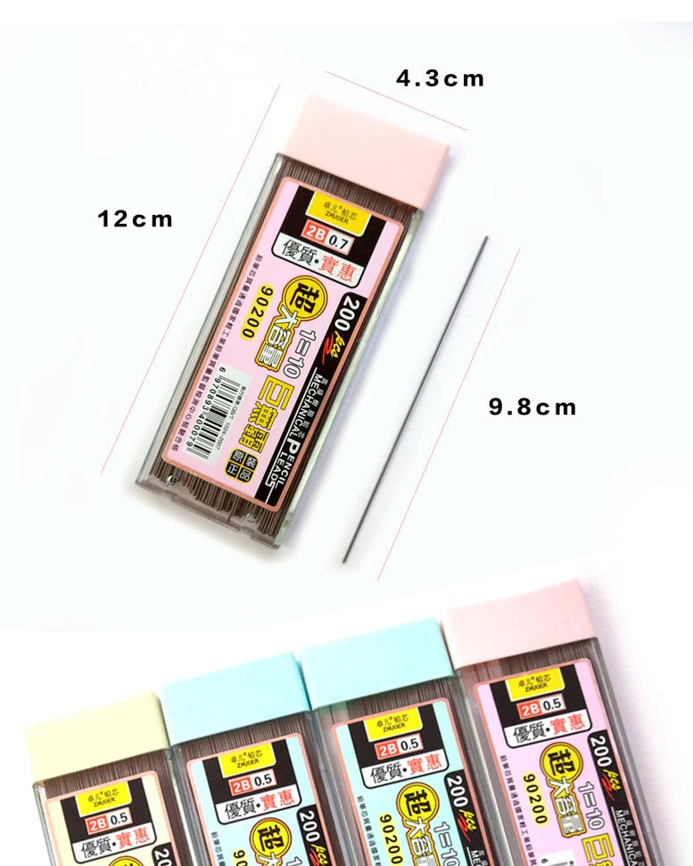 200/Pcs 0.5/0.7 مللي متر الميكانيكية قلم رصاص يؤدي 2B قلم رصاص قضيب التلقائي قلم رصاص الأساسية الملء مكتب المدرسة الفن رسم الرسم لوازم